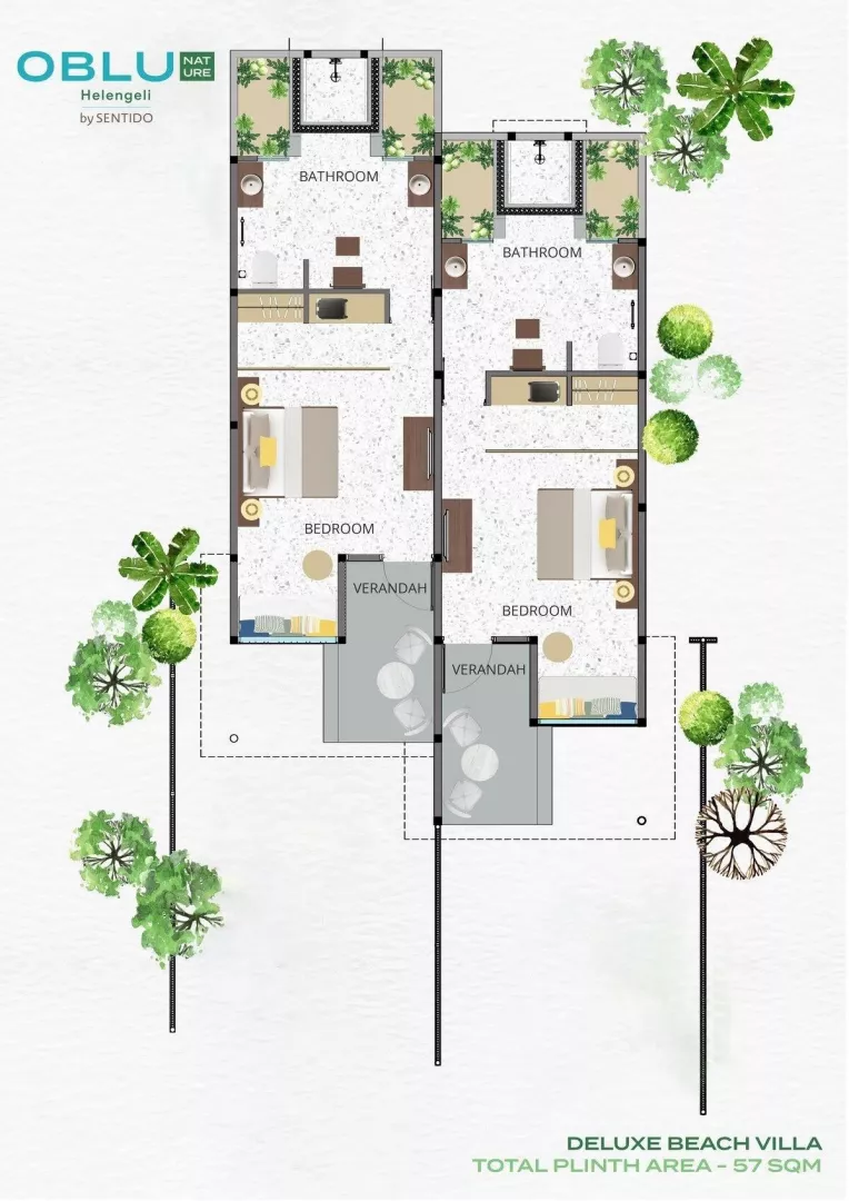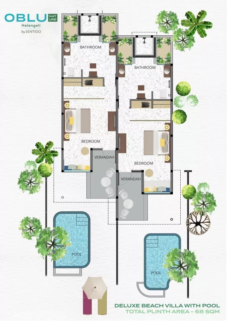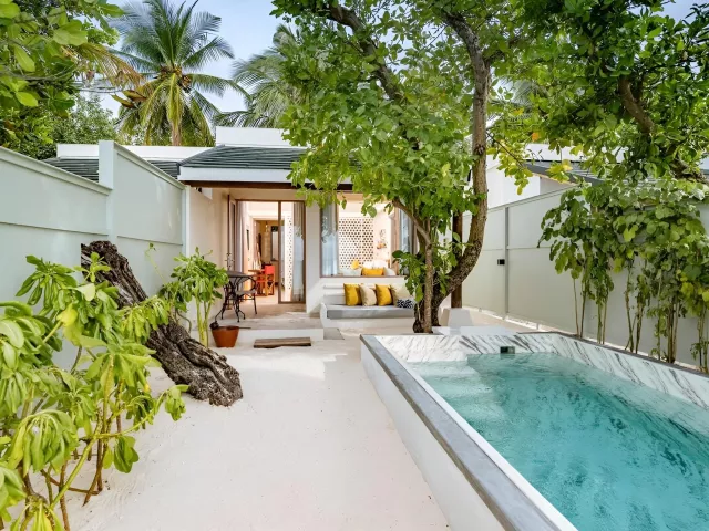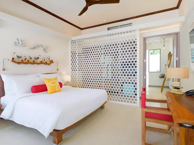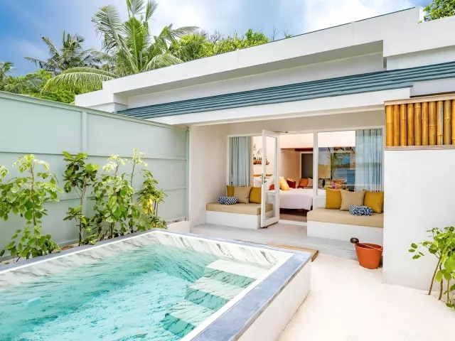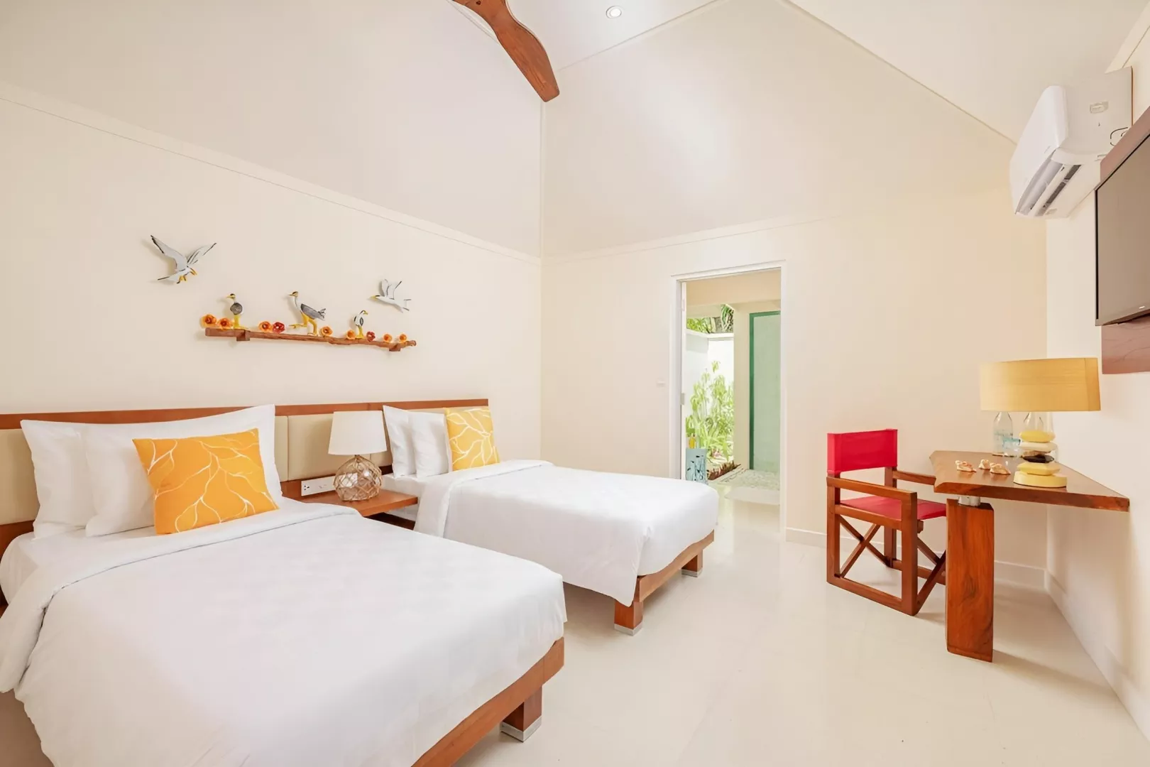 Luxusná plážová vila má rozlohu 57 m² a je dvojpodlažná s polootvorenou kúpeľňou, sprchou a WC. Každá izba je vybavená županom, sušičom vlasov, klimatizáciou, ventilátorom, minibarom (zdarma), trezorom, TV, Wi-Fi, príslušenstvom na prípravu kávy/čaju a terasou s výhľadom na oceán. K dispozícii sú aj rôzne typy izieb:
