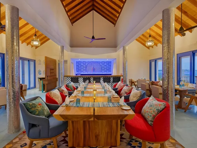 All Inclusive (Island plan) zahŕňa raňajky, obedy a večere v hlavnej bufetovej reštaurácii The Spice. Počas pobytu sú k dispozícii večere v à la carte reštauráciách v závislosti od dĺžky pobytu. K dispozícii je neobmedzená konzumácia vybraných alkoholických a nealkoholických nápojov a tradičné maledivské občerstvenie.