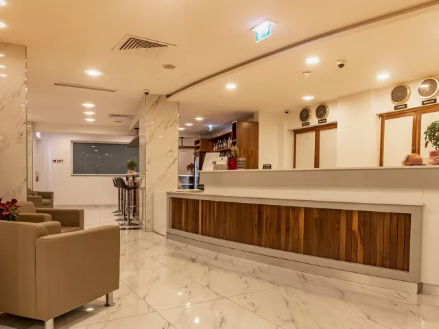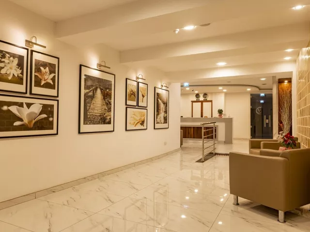 Štvorpodlažná budova hotela ponúka 50 izieb, recepciu a výťah. Na streche sa nachádza bazén, ktorý je v prevádzke približne od júna do októbra.