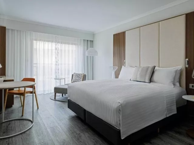 Hotel s celkovou kapacitou 276 izieb ponúka niekoľko kategórií: Standard, Superior a Deluxe (26-35 m²). Všetky izby sú vybavené sociálnym zariadením s vaňou alebo sprchou, vysúšačom vlasov, klimatizáciou, SAT/TV, telefónom, minibarom a trezorom (za poplatok), coffee/tea setom a balkónom alebo terasou (výhľad sa líši podľa kategórie).