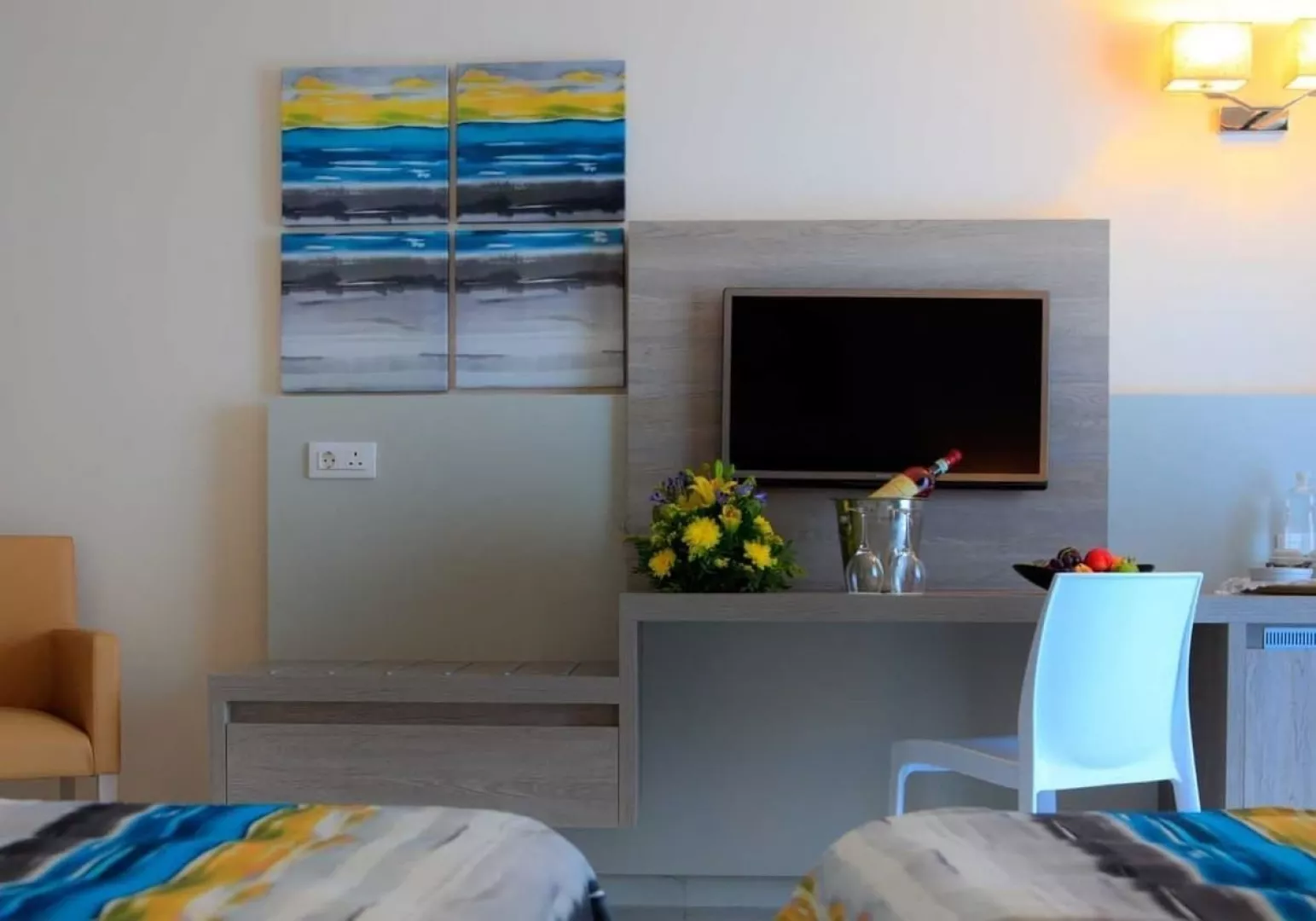 Dvojlôžková izba typu Double/Twin Room s balkónom ponúka vlastné príslušenstvo (kúpeľňa, sprcha, WC, sušič vlasov), WiFi, TV/sat., klimatizáciu, trezor, minibar (za poplatok), set na prípravu kávy/čaju, varnú kanvicu a telefón. Superior izba Double/Twin s balkónom alebo terasou s výhľadom na more má rovnaké vybavenie ako štandardná izba.