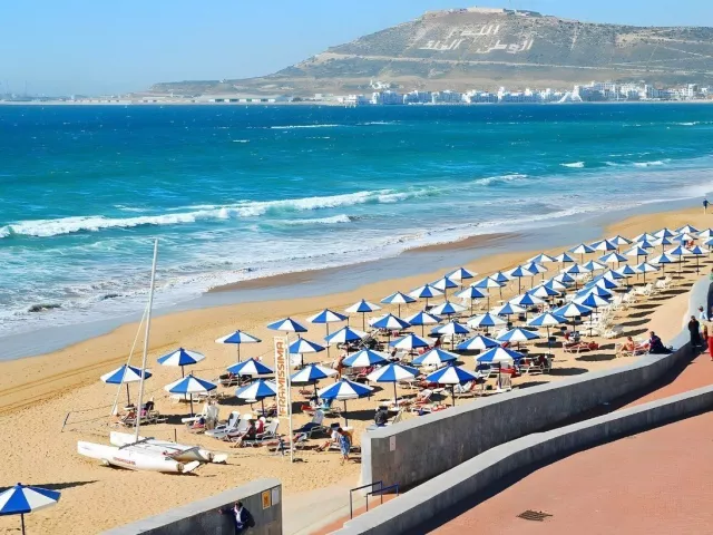 Hotel leží približne 500 metrov od centra Agadiru, kde nájdete širokú škálu barov, obchodov a reštaurácií, pričom autobusová zastávka je len asi 200 metrov od hotela. Stanovište taxi je priamo pred hotelom a letisko v Agadire (AGA) je vzdialené približne 25 km, zatiaľ čo letisko Marrakech Menara (RAK) sa nachádza asi 270 km od hotela.