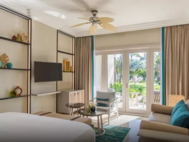 Hotel ponúka rodinné izby a izby pre dve osoby s možnosťou prístelky. Vybavenie zahŕňa súkromnú kúpeľňu so sprchou alebo vaňou, klimatizáciu, Wi-Fi a terasu alebo balkón. Deluxe izby sa nachádzajú v prvej línii pri oceáne s výhľadom na oceán, zatiaľ čo prestížne izby taktiež ponúkajú krásny výhľad na oceán.
