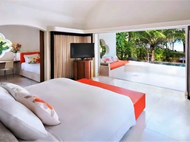 Suites so zdieľanou terasou sú vybavené manželskou posteľou, kúpeľňou s vaňou, TV, klimatizáciou, privátnou záhradou s ochladzovacím bazénom a výhľadom na oceán.