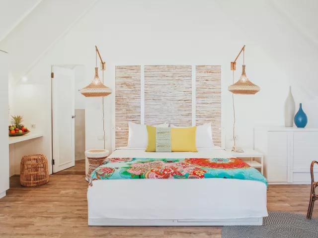 Každý bungalov je vybavený klimatizáciou, televízorom, telefónom, vlastným sociálnym zariadením, trezorom, setom na prípravu čaju a kávy, minibarom, stropným ventilátorom a Wi-Fi zdarma. K dispozícii sú aj rodinné bungalovy a špeciálne izby priamo pri pláži.