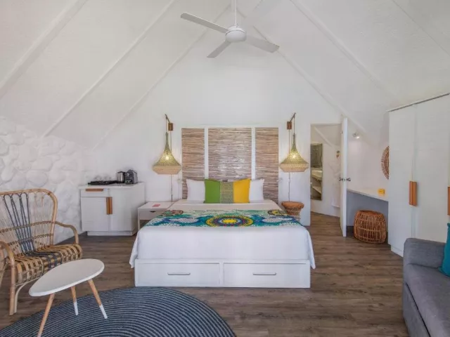 La Pirogue ponúka ubytovanie v 248 malebných tradičných bungalovoch, postavených z vulkanických kameňov s doskovou strechou, zasadených v tropickej záhrade. V disponibilných izbách nájdete klimatizáciu, SAT/TV, bezplatné WiFi, trezor, set na prípravu kávy a čaju, minibar a vlastné sociálne zariadenie (s vaňou/sprchou, sušičom vlasov a WC), ako aj balkón alebo terasu. Premium bungalovy s výhľadom do záhrady majú navyše samostatnú sprchu a kávovar. Plážový pavilón je priestrannejší a nachádza sa blízko pláže s výhľadom na more.