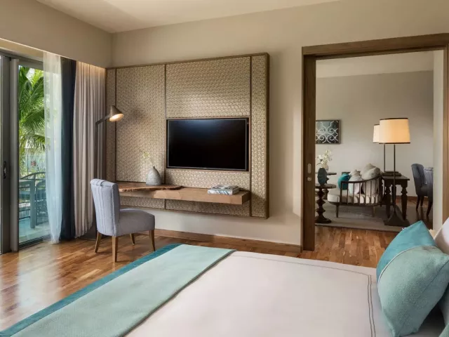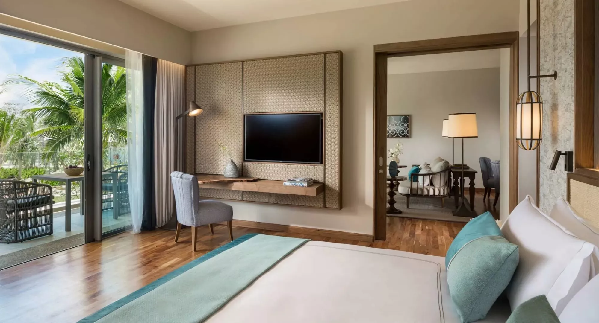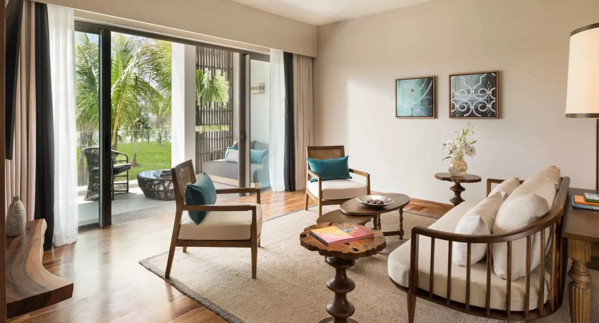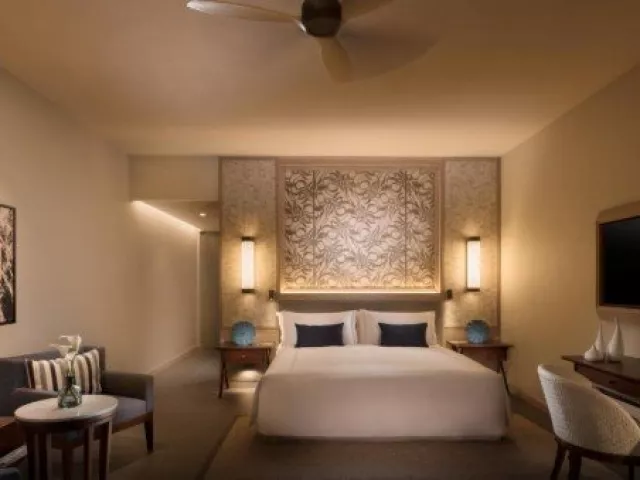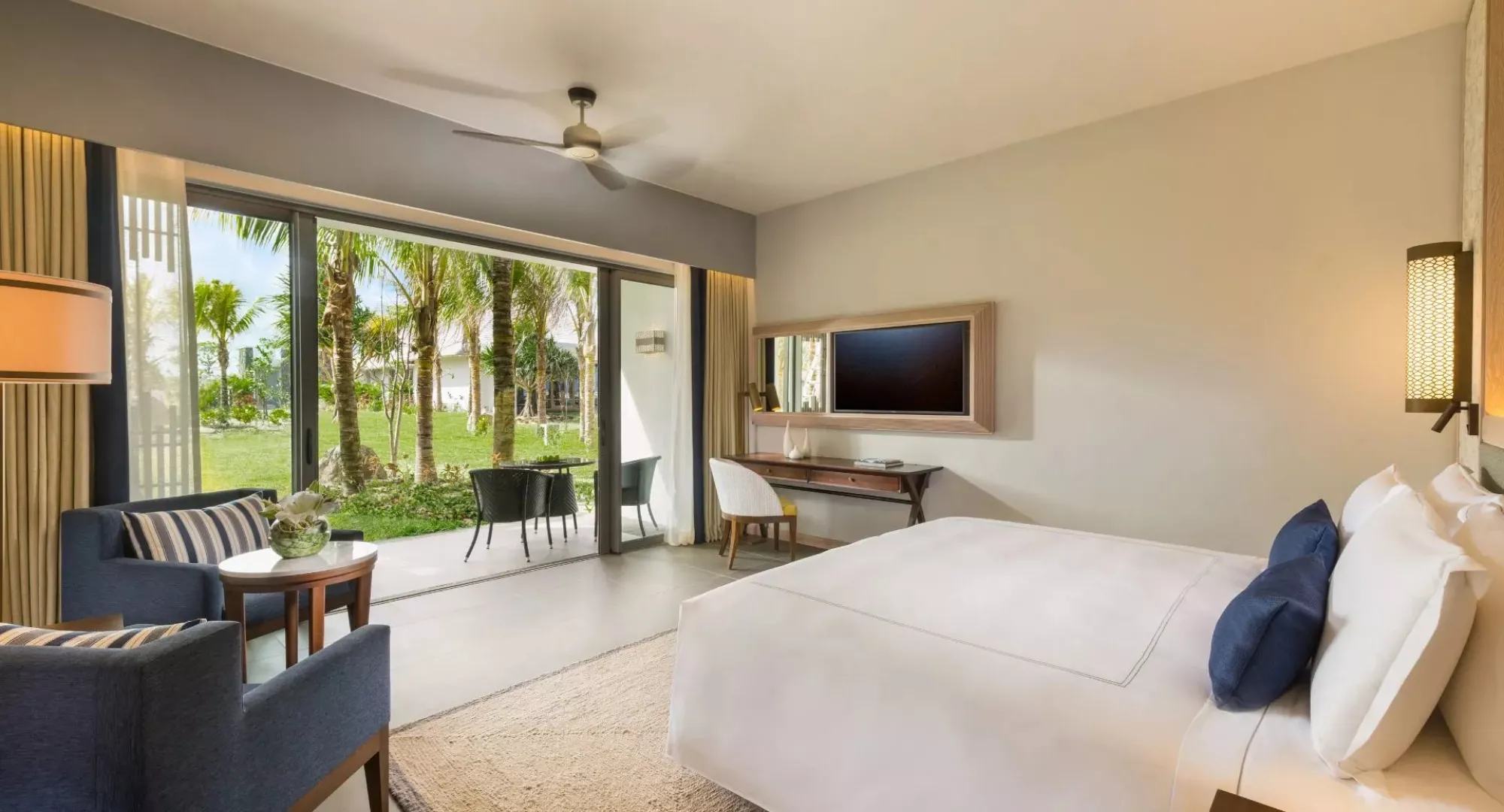 Hotel ponúka moderné izby, vrátane deluxe izieb s prístupom na pláž a výhľadom do záhrady alebo na oceán. Všetky izby sú vybavené klimatizáciou, Wi-Fi a vlastnou kúpeľňou s modernými zariadeniami. Niektoré izby majú terasu alebo balkón s výhľadom.