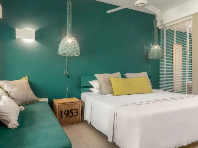 Izby sú vybavené vlastným príslušenstvom (kúpeľňa/sprcha, vysúšač vlasov, WC), klimatizáciou, stropným ventilátorom, trezorom, telefónom, SAT/TV a balkónom alebo terasou. K dispozícii sú aj izby Deluxe, rodinné izby Deluxe Family a rodinné apartmány s oddelenou izbou pre deti. Všetky izby majú výhľad do záhrady.