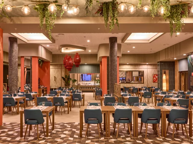 Súčasťou hotela je rôznorodá gastronomická ponuka, vrátane tematických reštaurácií, ktoré ponúkajú špeciality rôznych kuchýň. Dostupné sú tiež bary, kde si môžete užiť osviežujúce nápoje počas dňa.