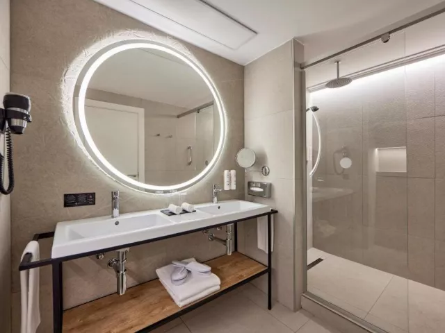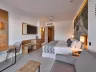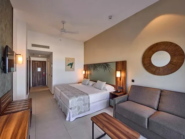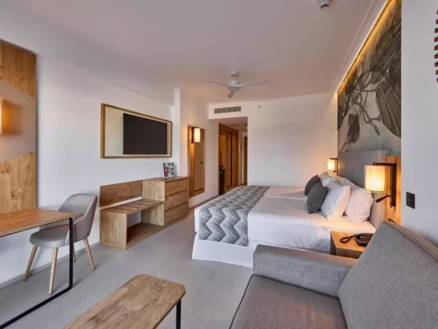Dvojlôžkové izby sú k dispozícii buď v hlavnej budove, alebo v iných budovách hotela. Izby sú vybavené klimatizáciou, SAT/TV, bezplatným Wi-Fi, trezorom, minibarom (denne doplňovaným v rámci all inclusive), čajovým a kávovým servisom, vlastným sociálnym zariadením (kúpeľňa, WC, sušič vlasov) a balkónom alebo terasou. Za príplatok sú dostupné izby s bočným alebo priamym výhľadom na more, s rovnakým vybavením.