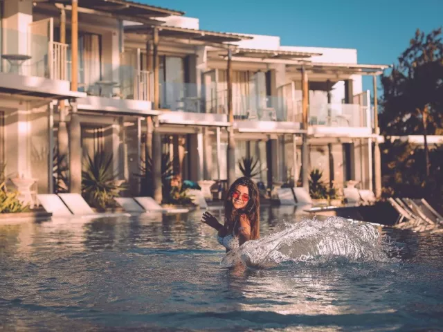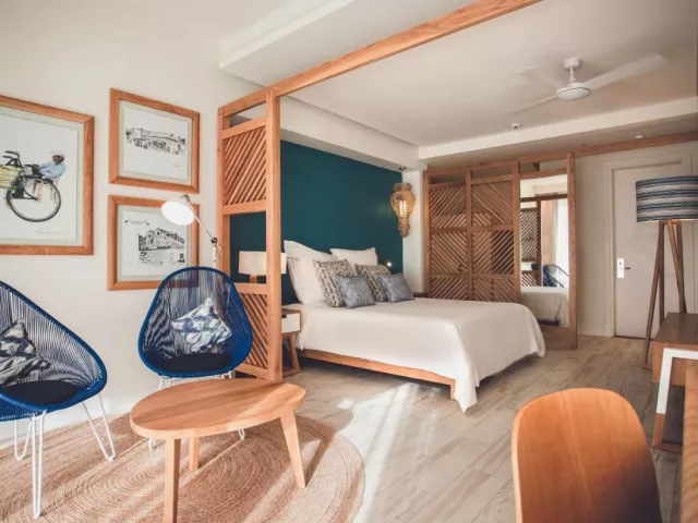 Dvojlôžková izba, Výhľad oceán: Všetky izby sú komfortne vybavené, disponujú kúpeľňa/WC (sušič vlasov), klimatizácia, minibar, trezor, telefón, TV/sat., kávovar. Balkón. umiestnenie na poschodí. Ostatné typy izieb (pokiaľ nie je uvedené inak, majú izby vyššie uvedené vybavenie) Dvojlôžková izba, Swim-Up: Priamy vstup do zdieľaného bazéna, terasa, umiestnenie na prízemí