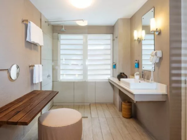 Izby sú vybavené kúpeľňou so sprchou, WC, sušičom na vlasy, klimatizáciou, TV/sat., minibarom, trezorom, setom na prípravu čaju a kávy a balkónom alebo terasou. K dispozícii sú aj priestrannejšie rodinné izby s oddelenou miestnosťou. Štandardné aj rodinné izby sú vybavené súkromnou kúpeľňou, klimatizáciou a terasou alebo balkónom. Wi-Fi je dostupné za poplatok.