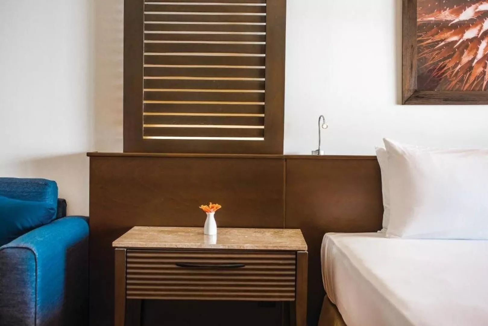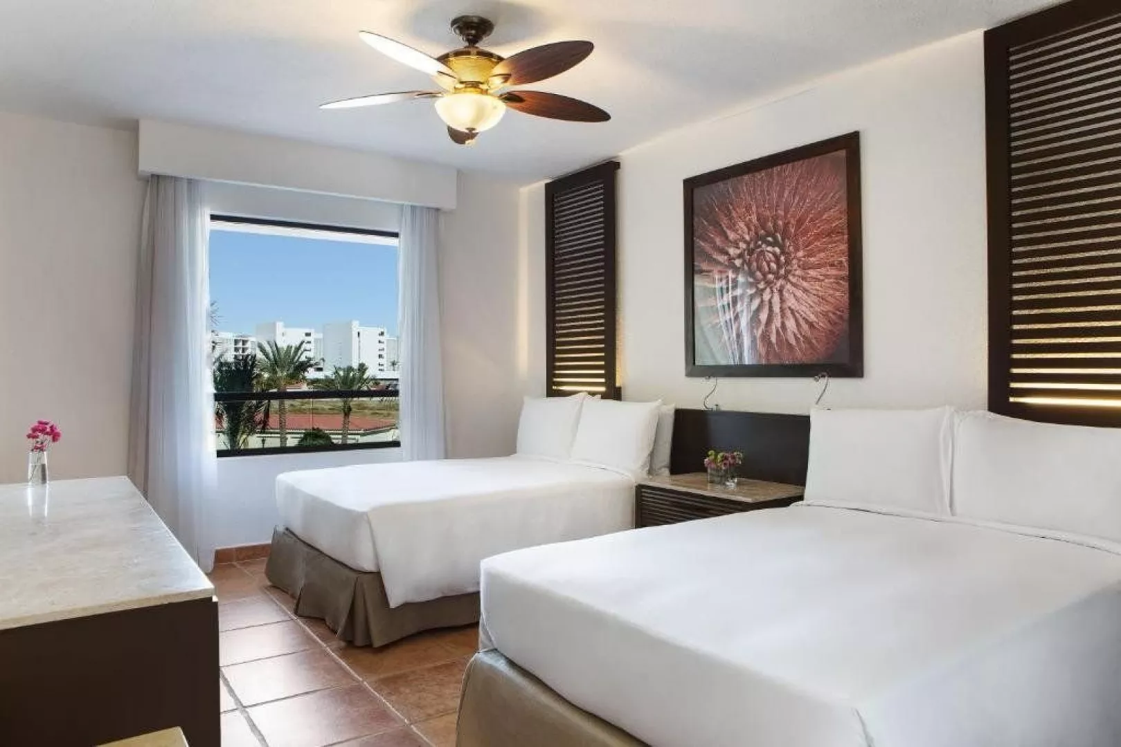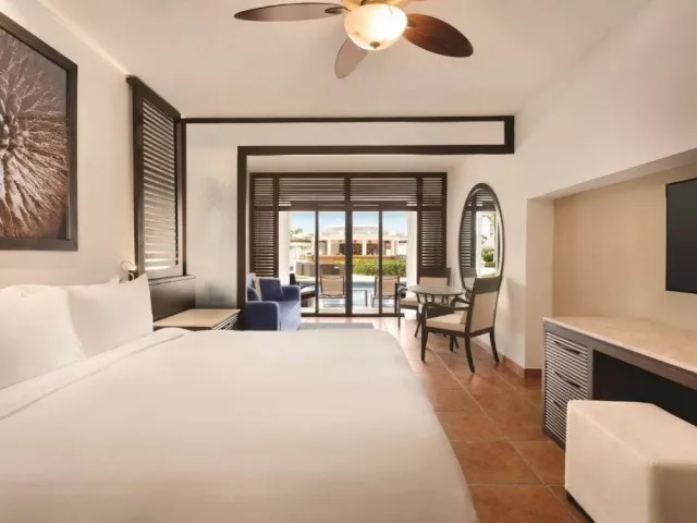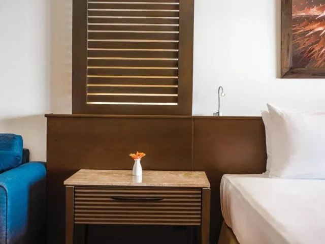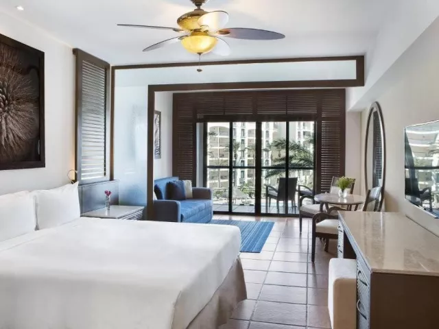 Pokoj standard - manželská postel. Pokoj je klimatizovaný a má vlastní sociální zařízení (WC, sprcha nebo vana, fén, toaletní potřeby), TV, telefon, pohovka, rádio, set na přípravu kávy/čaje, psací stůl, budík, trezor, Wi-Fi zdarma, minibar (za poplatek). Pokoj má balkon nebo terasu. Za příplatek možnost pokoje s přímým přístupem do sdíleného bazénu (swim-up) nebo 2 ložnicové suity.