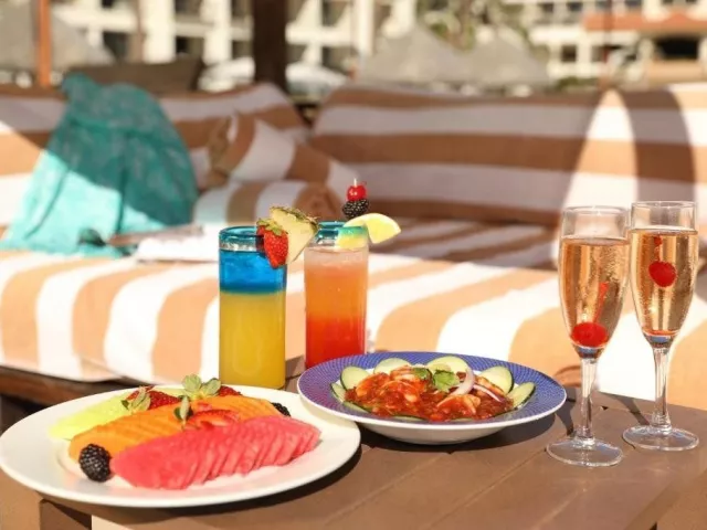 All inclusive zahrnuje snídaně, obědy a večeře formou švédských stolů v hlavní restauraci nebo výběrem z menu v některé z restaurací á la carte (nutná rezervace předem). Během dne jsou k dispozici různé snacky, káva, čaj a vybrané místní alkoholické a nealkoholické nápoje.