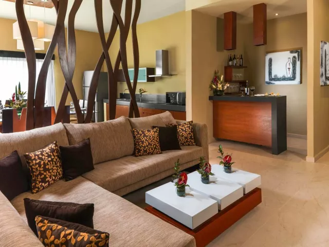 Všechny suity mají non stop pokojovou službu, velký balkon nebo terasu, Jacuzzi pro dva, TV, iPod, klimatizaci, koupelnu se dvěma umyvadly, fénem, trezor, žehličku, kávovar, telefon, minibar. Oceanfront Luxury Junior suite: prostorné suity s jednou ložnicí a obývací částí s rozkládací pohovkou. Místnosti jsou oddělené posuvnými dveřmi pro více soukromí. Swim Up Suite - přímý vstup do bazénu