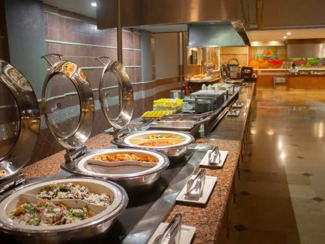 All inclusive program obsahuje raňajky, obedy a večere formou bufetu, ľahké občerstvenie počas dňa, nealkoholické nápoje a vybrané alkoholické nápoje v časoch a miestach určených hotelom. K dispozícii sú 2 bufetové reštaurácie, 1 pizzeria, 5 à la carte reštaurácií a 5 barov.