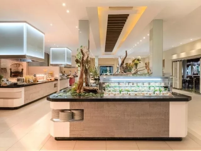 Hotel disponuje 350 izbami rozmiestnenými v troch budovách v rozľahlej záhrade. Súčasťou vybavenia sú recepcia, lobby s barom, športový bar, hlavná reštaurácia a päť á la carte reštaurácií. V vonkajšej časti sa nachádza divadlo, bazénový komplex s množstvom aktivít, aqua bar a reštaurácia. Ležadlá, slnečníky a osušky pri bazéne sú zdarma. WiFi je dostupné vo všetkých priestoroch hotela, vrátane izieb. Wellness-SPA ponúka za príplatok parnú saunu, vírivku a masáže.