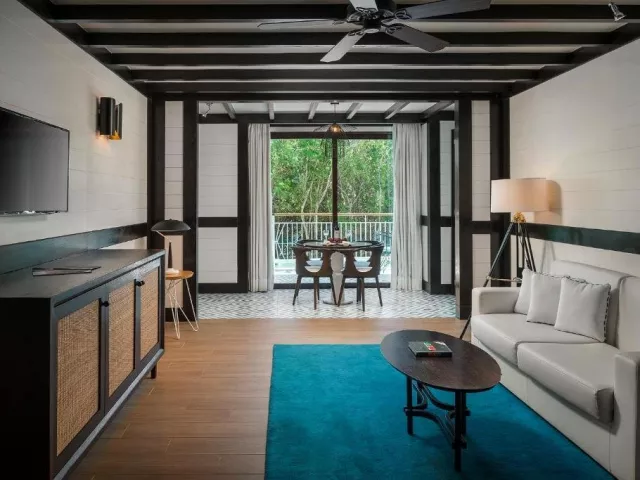 Junior suite je klimatizovaná a má vlastní sociální zařízení (WC, sprcha nebo vana, fén), TV, telefon, set na přípravu kávy/čaje, trezor, Wi-Fi zdarma, minibar za příplatek,balkon. Možnost příplatku na Junior suite s Jacuzzi. Privilege Junior suite je prostornější a možnost Swim Up Terasy.