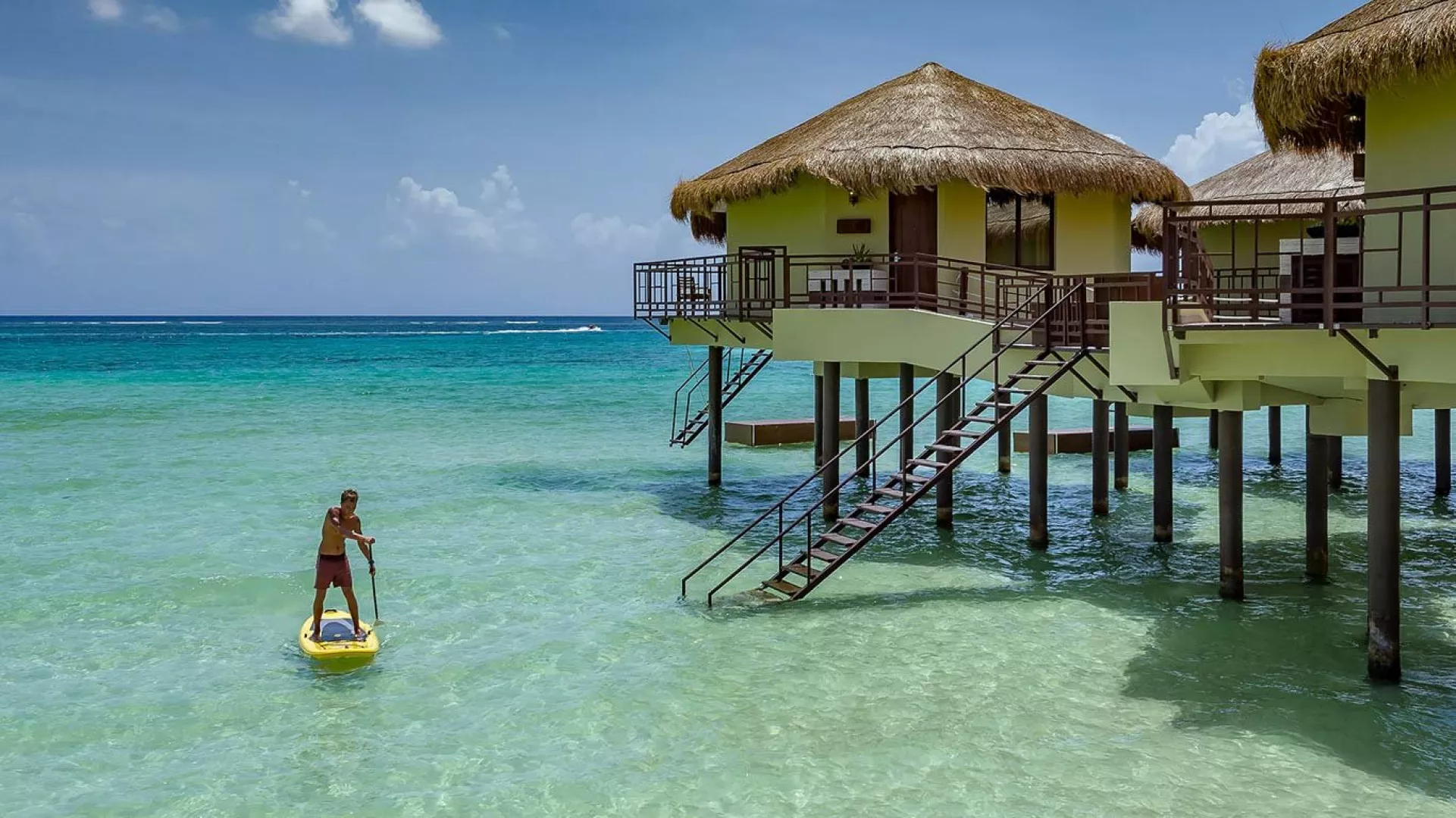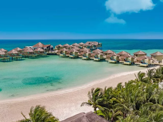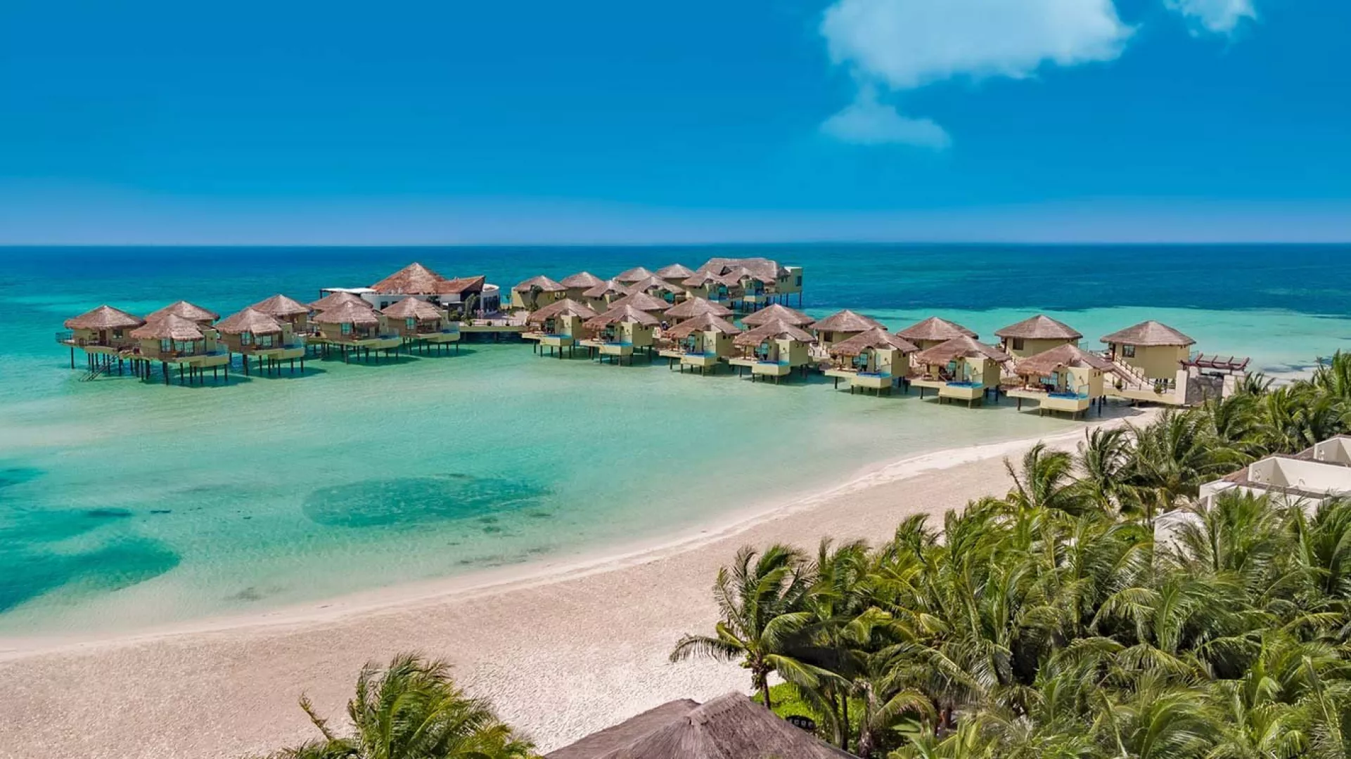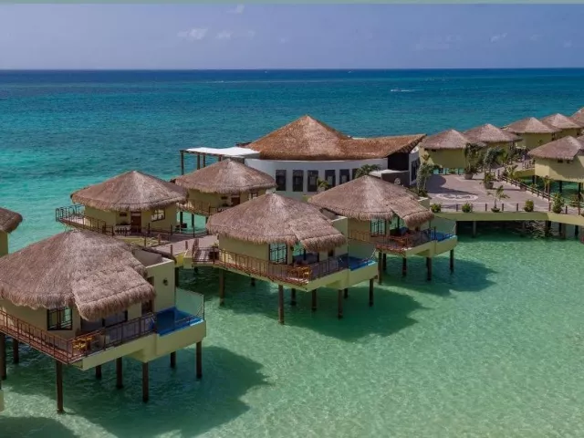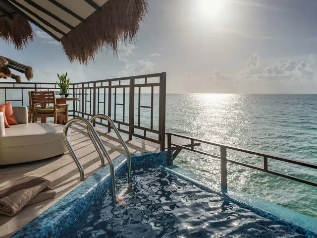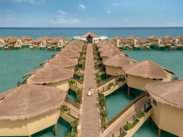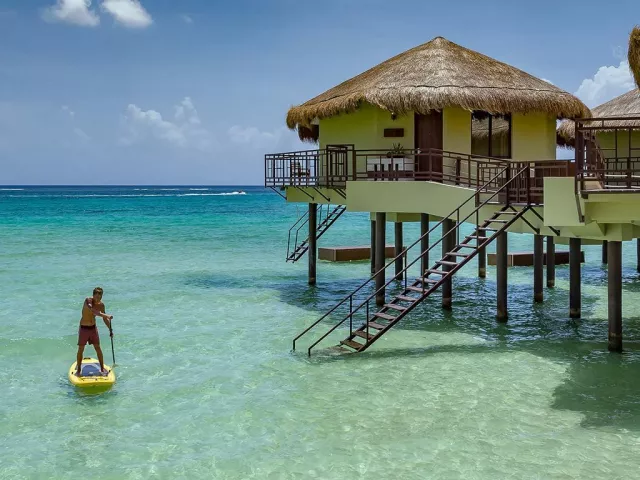 Palafitos Overwater Bungalows El Dorado Maroma, vodní bungalovy, se nachází v oblasti Maroma cca 50 min od Cancunu. Hosté mohou využívat služeb a zázemí hotelu El Dorado Maroma.
