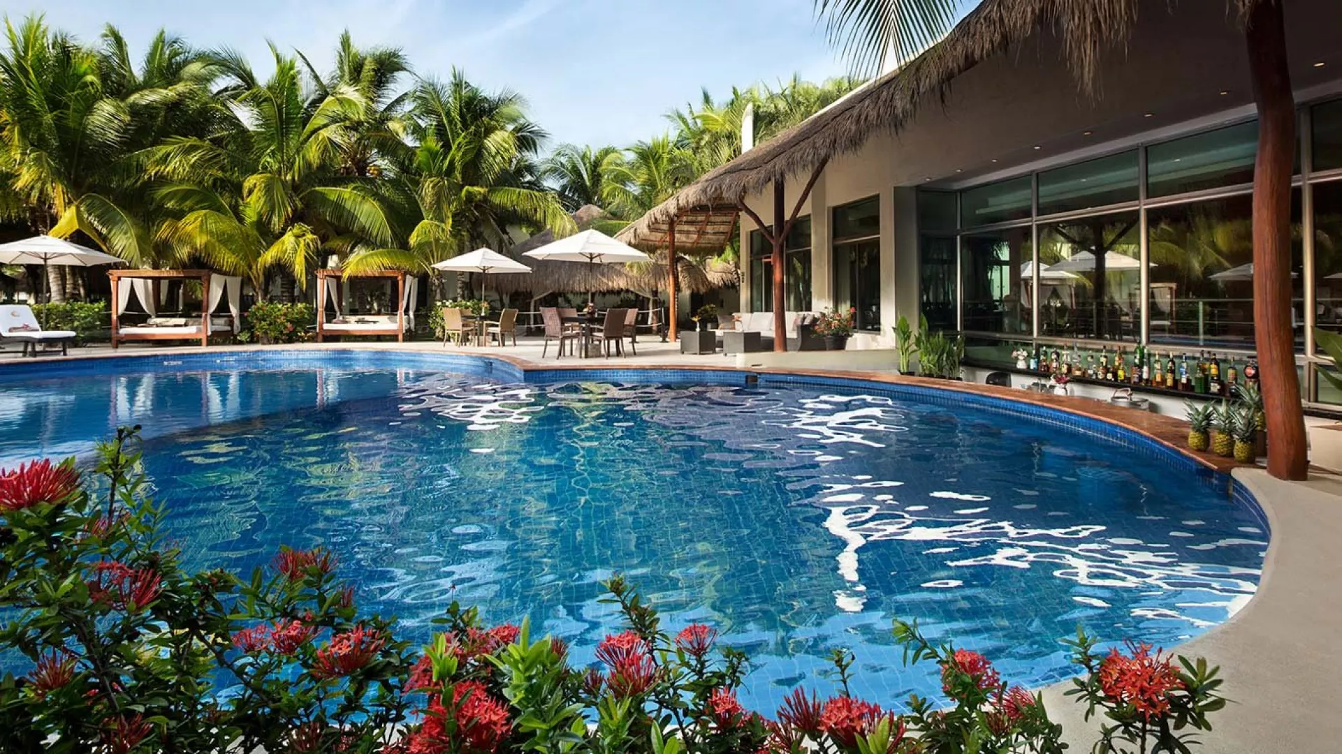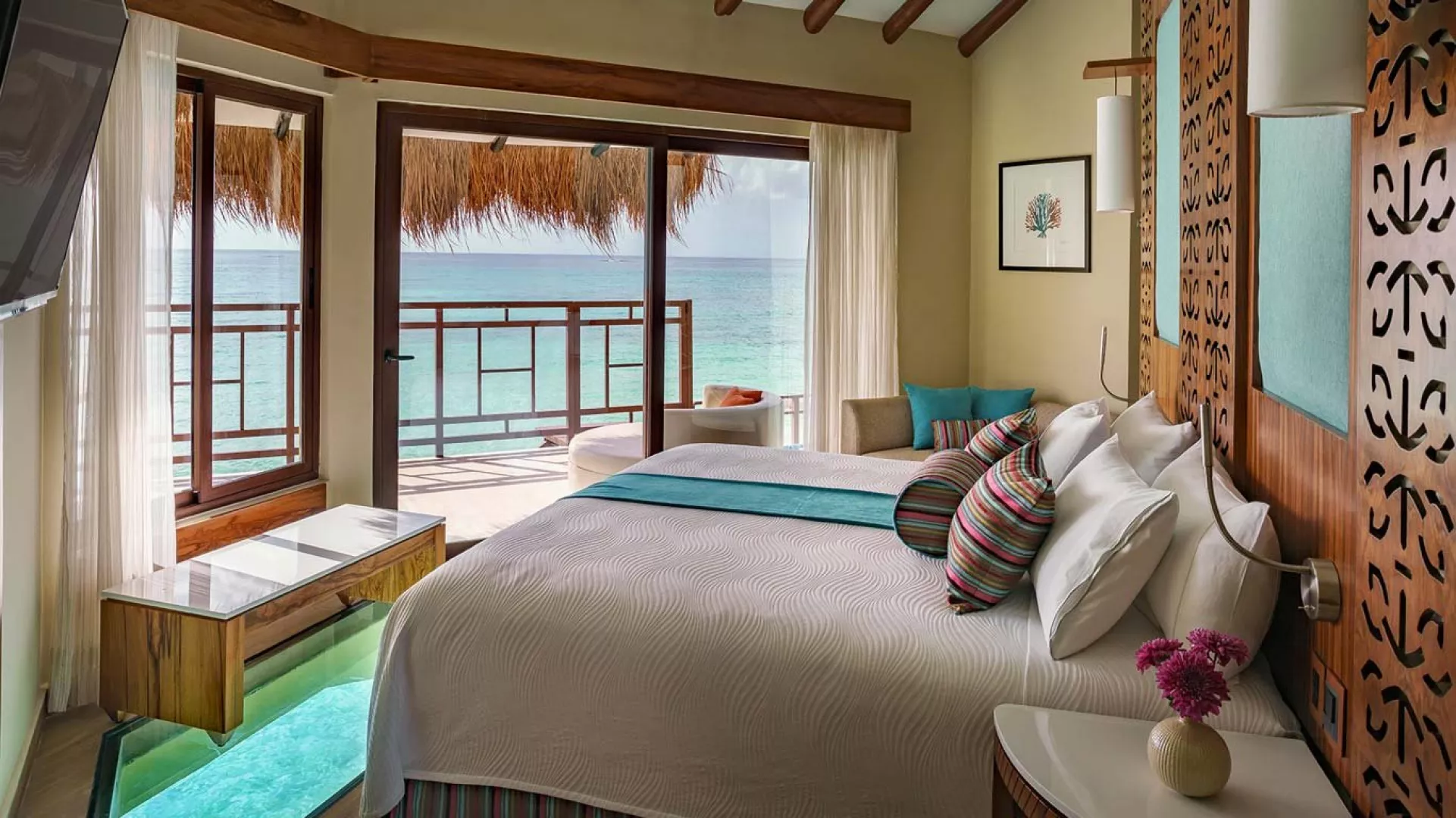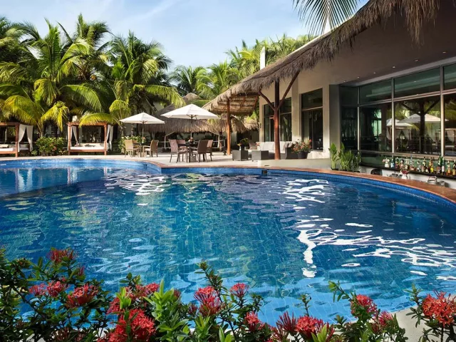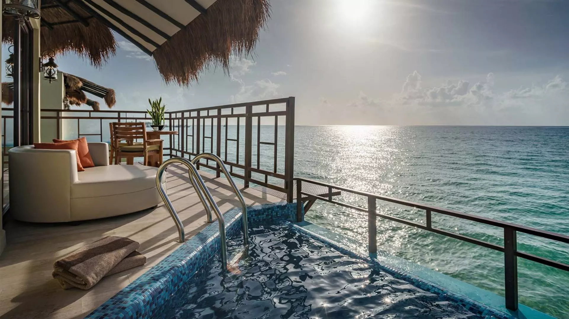 Palafitos Overwater Bungalows El Dorado Maroma, vodní bungalovy, se nachází v oblasti Maroma cca 50 min od Cancunu. Hosté mohou využívat služeb a zázemí hotelu El Dorado Maroma.