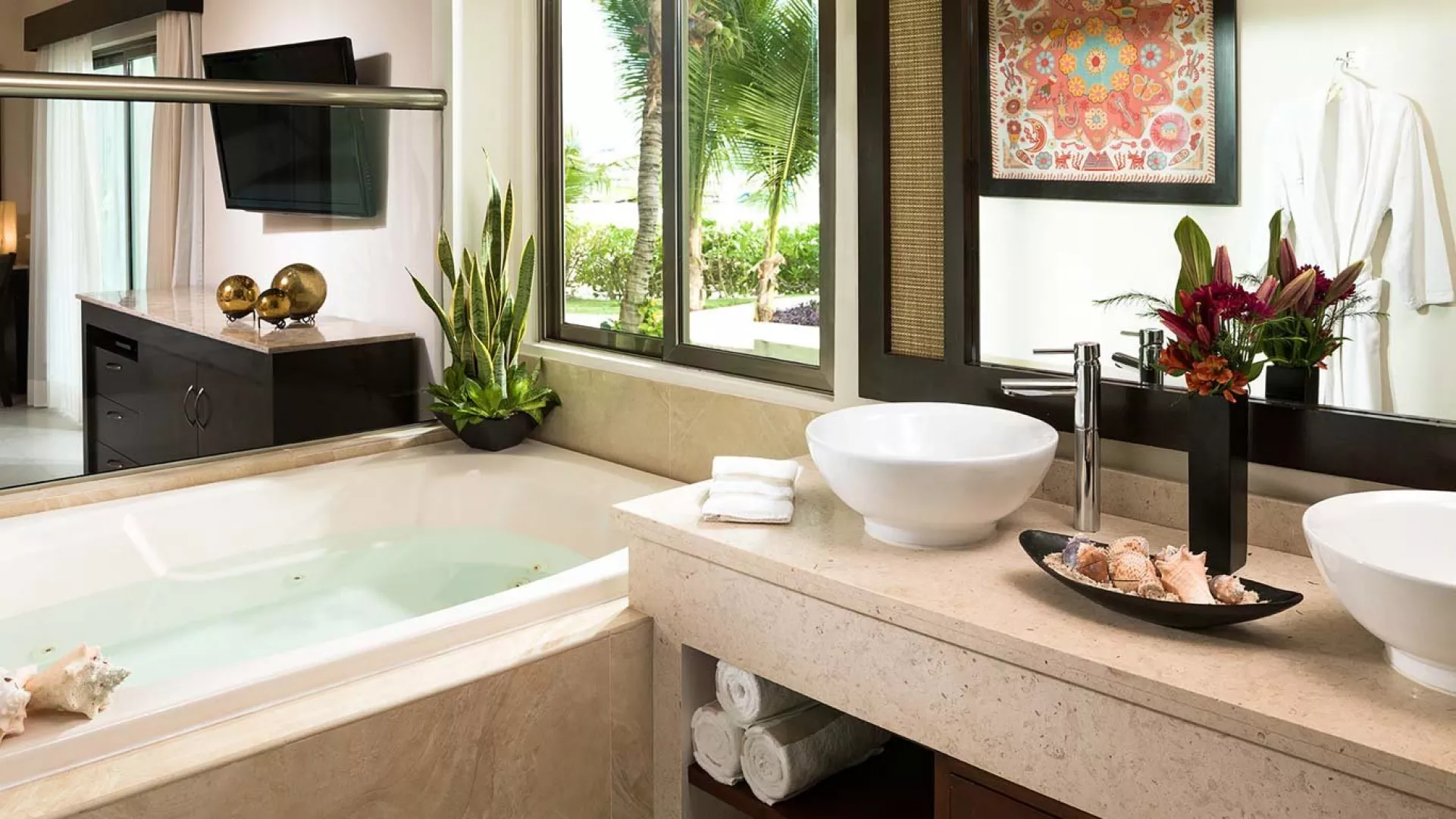 30 bungalovů, 5 restaurací, 6 barů, 4 bazény, spa centrum, fitness, Wifi zdarma