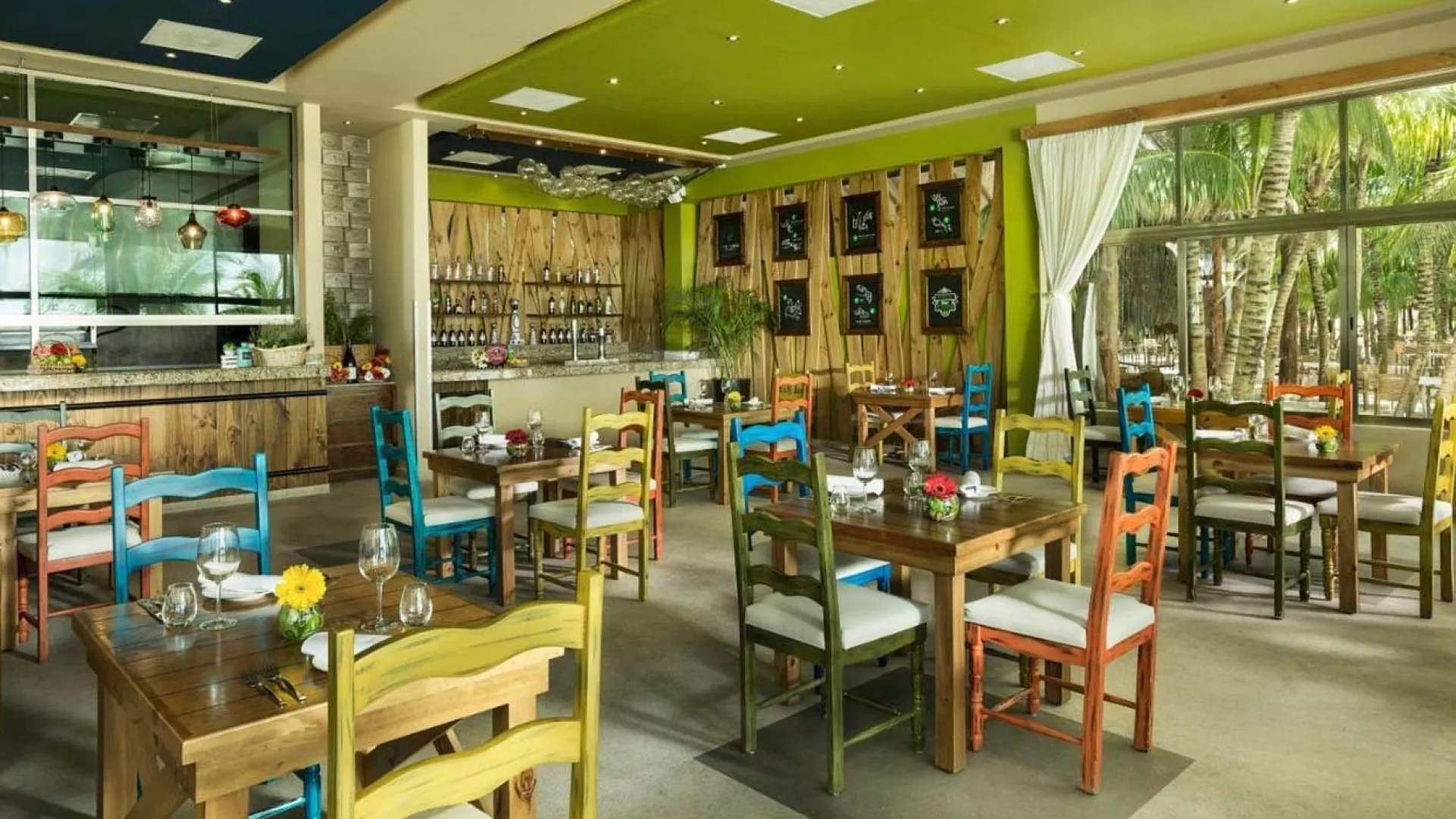 "Gourmet Inclusive": snídaně (07.00 - 12.00 hod), obědy (12.00 - 17.30 hod) a večeře (18.00 - 22.00 hod) formou bufetu exkluzivně pro klienty Palafitos Bungalows, Dále mohou klienti využívat všechny restaurace hotelu El Dorado Maroma (2 další bufetové, italská, mexická/gril), Neomezená konzumace alkoholických a nealkoholických nápojů místních i prémiových značek, Služby komorníka, Welcome drink - tequila nebo mezcal ochutnávka, Bali beds na pláži, Obsluha na pláži, Minibar na pokoji (denně doplňovaný), snack na pokoji, Wifi připojení, Nemotorizované vodní sporty (kajak a paddle board), lekce španělštiny, jóga, aqua aerobik, lekce latinských tanců, lekce vaření.