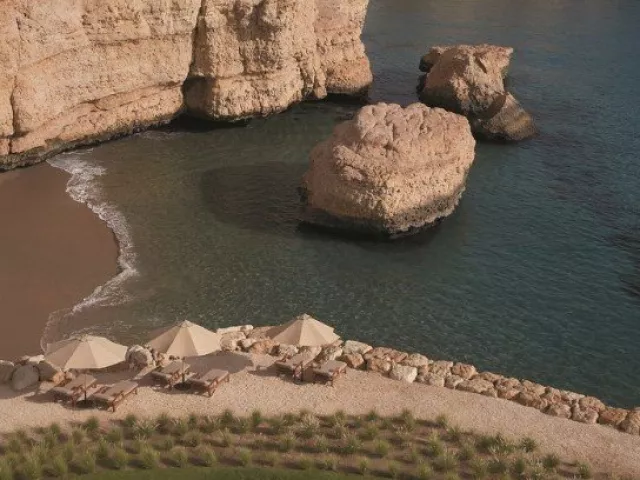 Hotel sa nachádza priamo na krásnej piesočnatej pláži s transferom z medzinárodného letiska Muscat trvajúcim asi 45 minút. Centrum mesta Muscat je vzdialené približne 30 km a nákupné možnosti Muscat City Centre sú len 25 minút autom.