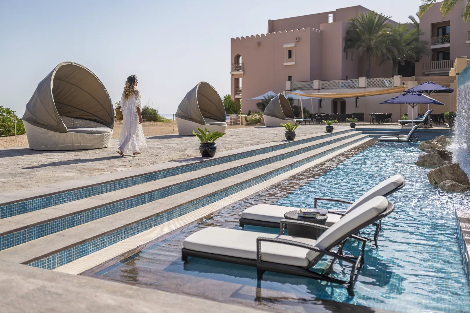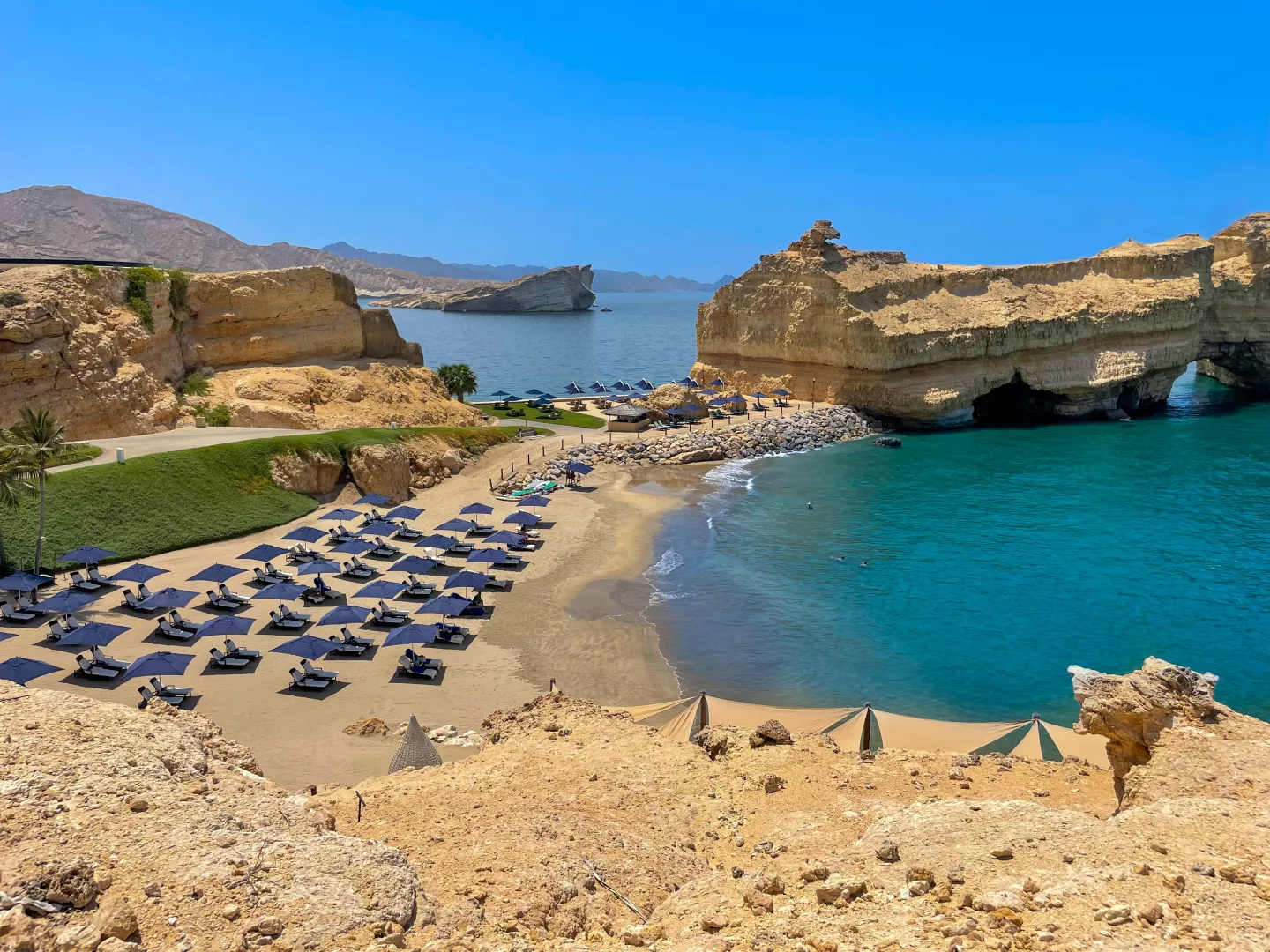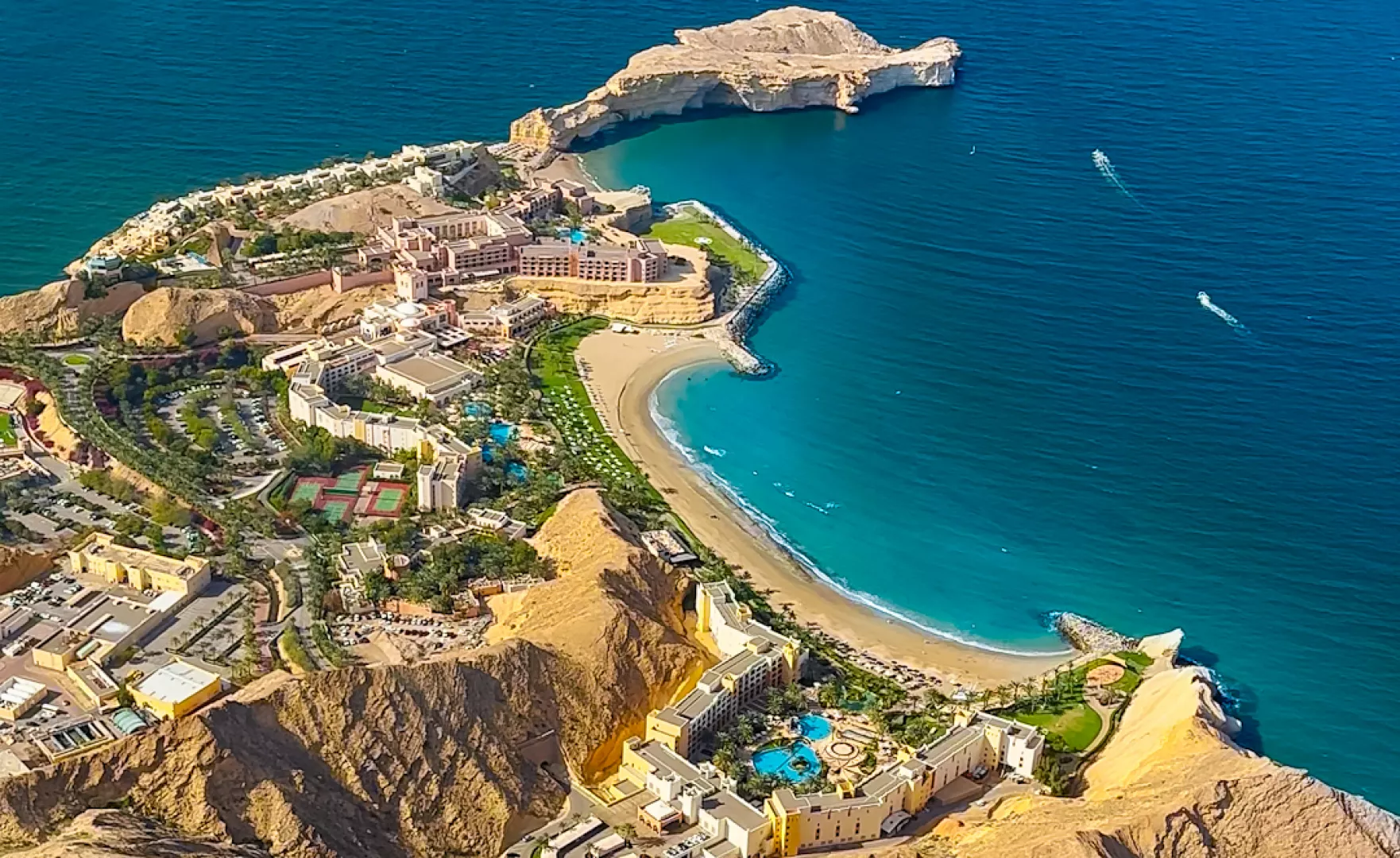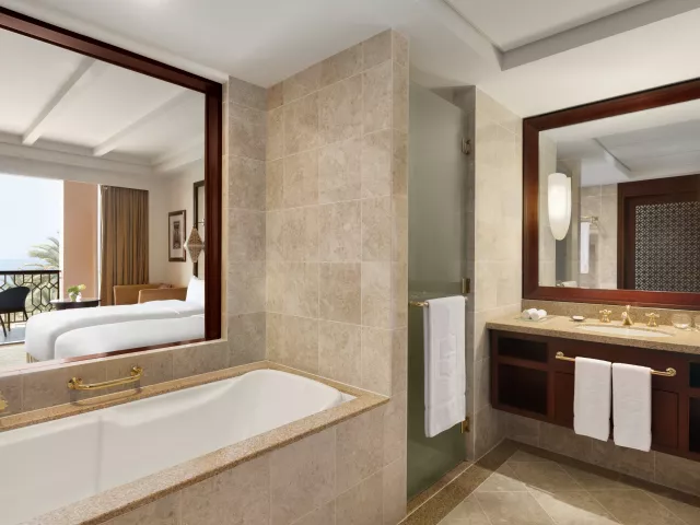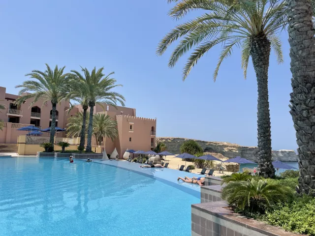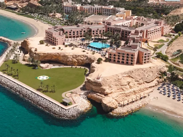 Hotel sa nachádza priamo na krásnej piesočnatej pláži, len 45 minút jazdy od medzinárodného letiska Muscat. Nákupné možnosti v Muscat City Centre sú vzdialené približne 25 minút autom, zatiaľ čo centrum Muttrah Souk sa nachádza len 15 minút jazdy hotelovým shuttle busom, ktorý je k dispozícii zdarma.