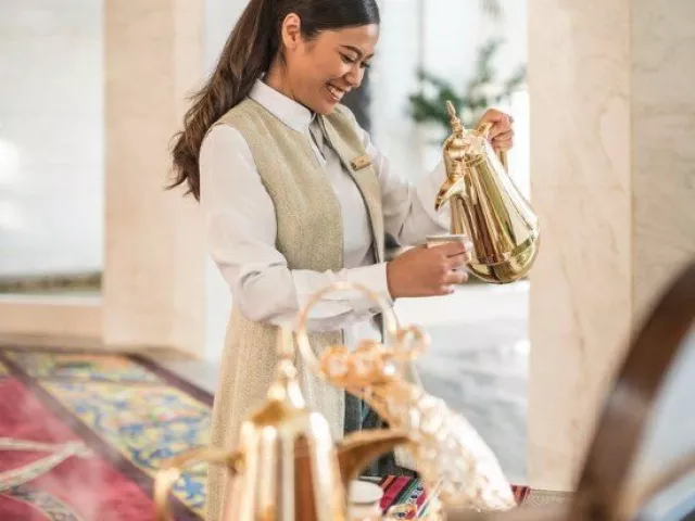 Na výber sú raňajky formou bufetu a teplé raňajky à la carte. Je dostupná aj možnosť polpenzie. Každý deň sa servíruje čaj na terase reštaurácie Sultanah a pred večerou sú podávané nápoje s kanapkami v záhrade.