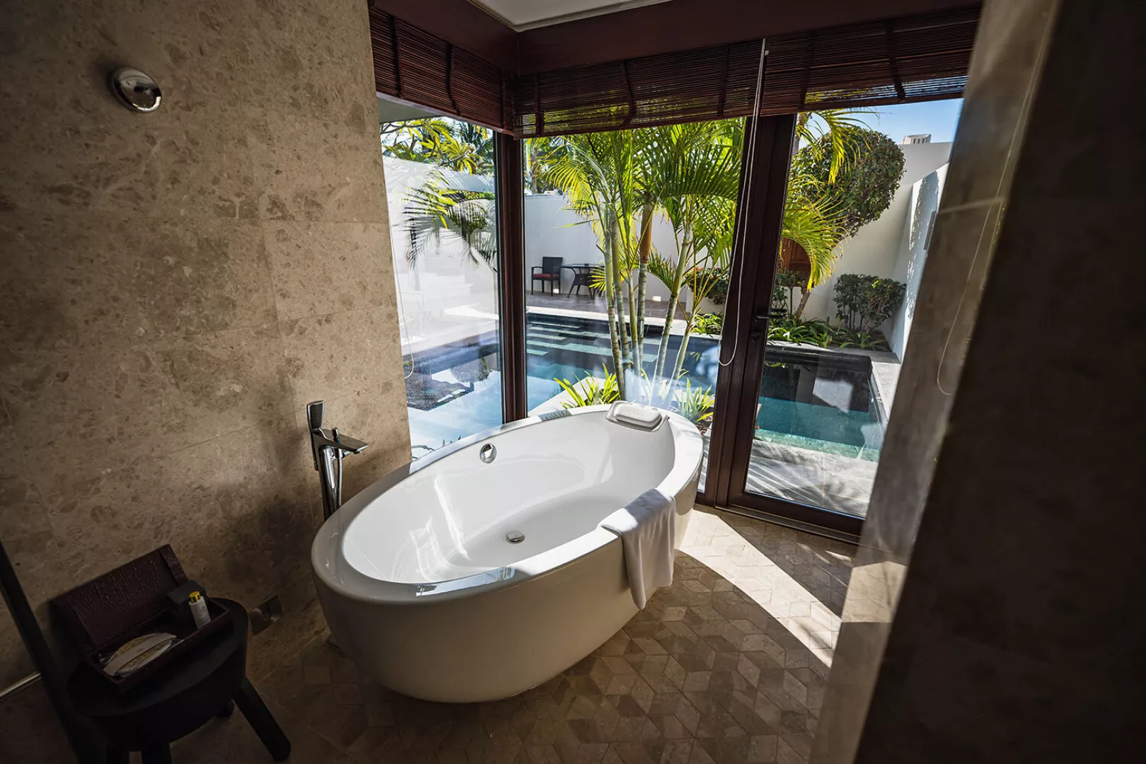Izby ako Deluxe Room, Deluxe Sea View Room, Garden View Suite a vily s privátnym bazénom ponúkajú luxusné ubytovanie pre 2 až 3 dospelé osoby a rodiny s deťmi, pričom niektoré majú aj nádherný výhľad na more alebo západ slnka.
