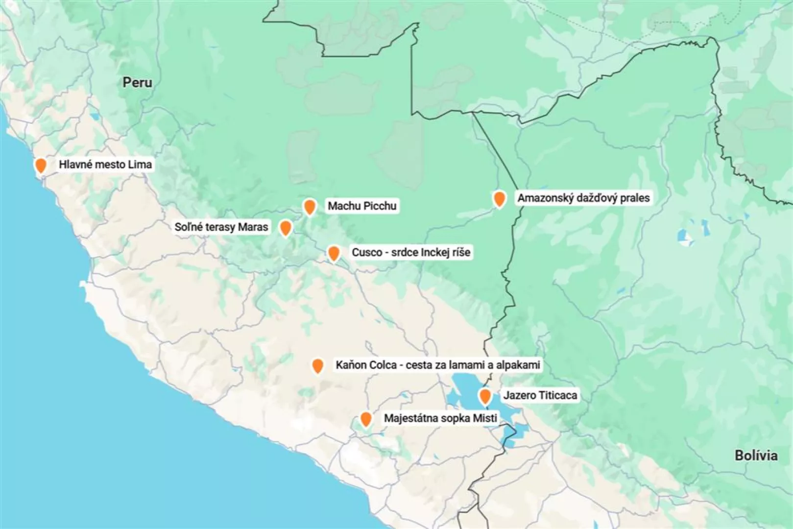 Intro: Vydajte sa na veľkú cestu krajinou dávnych civilizácií, mystických hôr a fascinujúcej prírody. Spoznajte Peru v celej jeho rozmanitosti - od legendárneho Machu Picchu, cez vysoké Andy až po zelené srdce Amazónie. Zavedieme vás k najikonickejším miestam celej Južnej Ameriky.