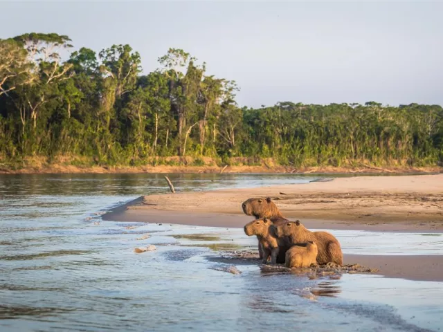Počas výprav loďou po rieke a prechádzok džungľou môžete pozorovať kapibary – najväčšie hlodavce sveta, pokojne sa pohybujúce pri brehoch riek. V lagúnach žijú obrie riečne vydry, ktoré patria medzi najvzácnejšie druhy Južnej Ameriky. Večer sa vydáte hľadať kajmany, plazy príbuzné krokodílom a aligátorom, ktorých oči sa v tme odrážajú v svetle bateriek.