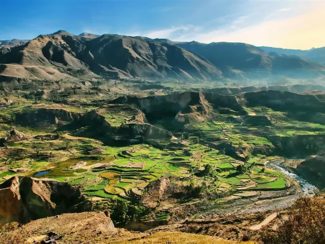 Colca patrí medzi najhlbšie kaňony sveta. Z vyhliadok budete pozorovať dramatické skalné útvary a tradičné terasovité políčka vybudované ešte pred-inckými civilizáciami. Vrcholom zážitku je pozorovanie majestátnych andských kondorov, vznášajúcich sa nad kaňonom. Po návrate do dediny cesta pokračuje náhornou planinou Altiplano smerom k ikonickému jazeru Titicaca. Krajina je drsná, rozľahlá a veľmi autentická. Podľa okolitej vegetácie nič nenasvedčuje tomu, že ste v trojtisícovej nadmorskej výške. Večer príchod do mesta Puno na brehu najvyššie položeného splavného jazera sveta.
