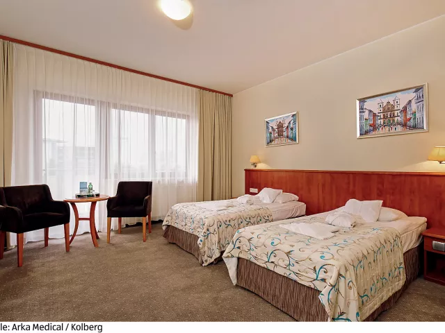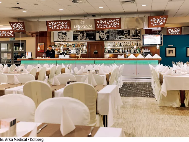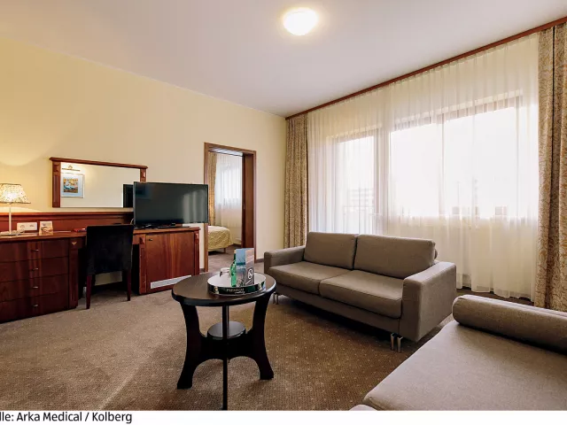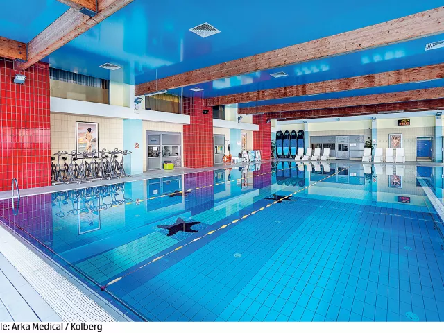 bazén 328 m², vonkajší bazén 112 m², para#, sauna#, fínska sauna#, soľná jaskyňa (1x zdarma / pobyt), rašelinový kúpeľ#*, solárium*#, masáže*, kozmetické služby*, široká ponuka liečebných a regeneračných procedúr*, posilňovňa, stolný tenis, tenisová hala*, biliard*, stolný futbal; služby označené # môžu využívať deti až od 11 rokov, bazén len v sprievode dospelej osoby * služby za príplatok