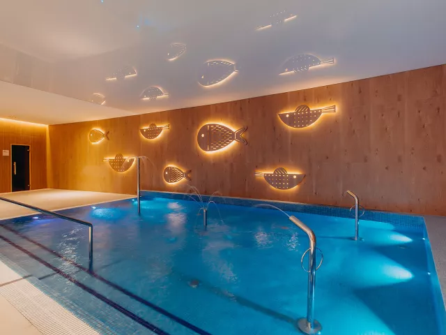 vonkajší vyhrievaný bazén (18 x 7,5 m), vonkajší detský vyhrievaný bazén, vnútorný bazén (15x 5 m), vnútorný detský bazén (3,4x7,5 m), jacuzzi, saunová zóna (infra, suchá, parná), kozmeticko - kúpeľné SPA centrum* (široká ponuka kozmetických služieb*, masáže*, regeneračné procedúry*), posilňovňa, požičanie palíc pre nordic walking, požičovňa bicyklov (od marca do novembra) * zóna len pre dospelých každý deň od 19,30 do 21 hod. – vnútorný bazén a wellness centrum, len pre osoby staršie 16 rokov * služby za príplatok
