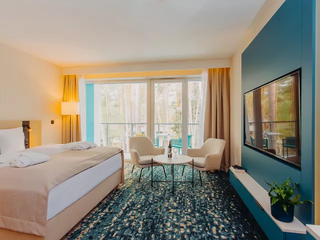 klimatizácia, TV sat., telefón, wi-fi pripojenie na internet, trezor, súprava na kávu a čaj, chladnička, minibar, fén, kozmetická súprava, žehliaca súprava, župany, papuče