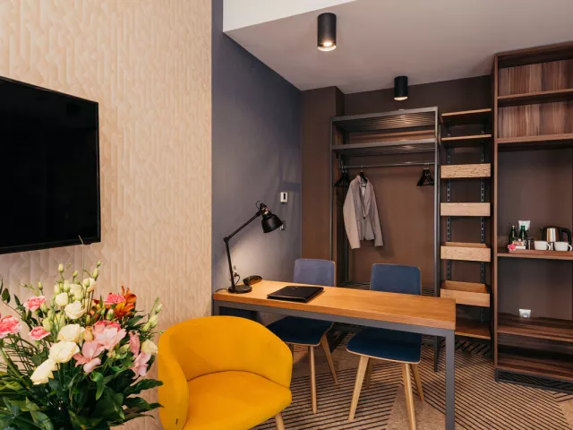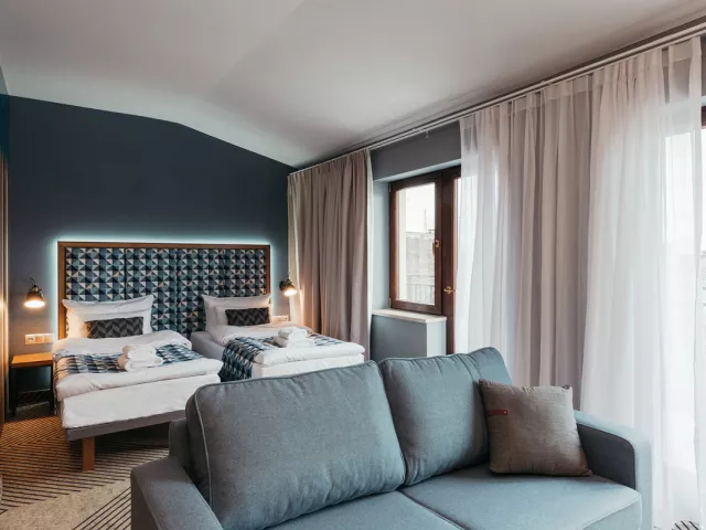 56 elegantných izieb, moderný mestský hotel v širšom centre Krakova, v mestskej časti Nowy Kleparz, približne 10 – 15 minút chôdze od Starého Mesta, Rynku a hlavných turistických atrakcií; zároveň dobre dostupný z vlakovej aj autobusovej stanice