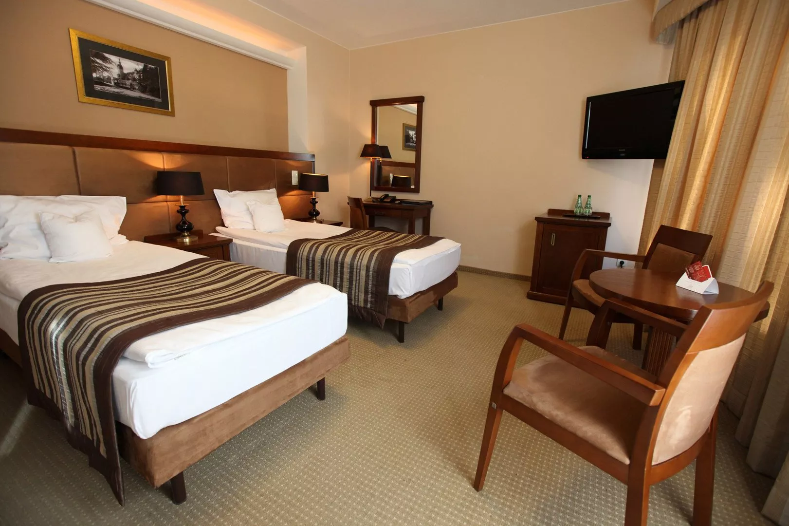 Izbové zariadenie je svetlé a moderne vybavené. Dvojlôžková izba s prístelkou a balkónom obsahuje vlastné sociálne zariadenie (kúpeľňa, WC), TV, telefón, písací stôl a klimatizáciu.
