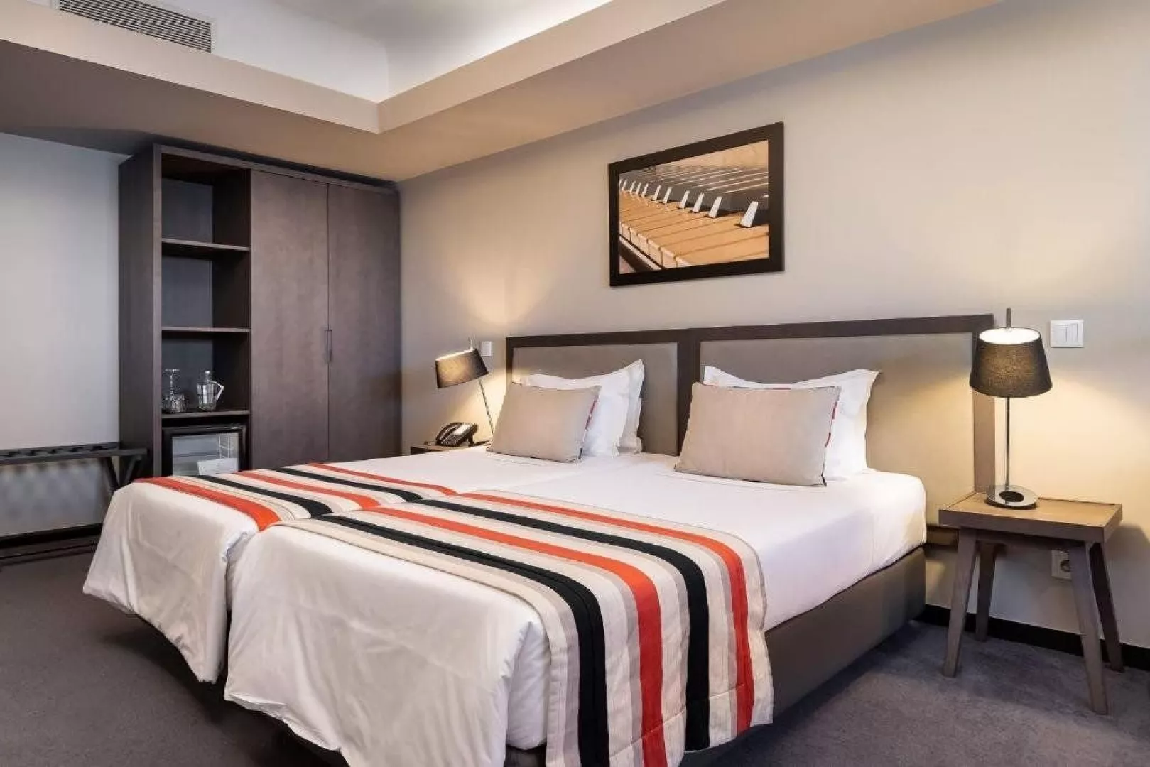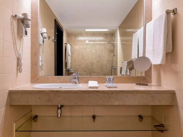 Dvoulůžkový pokoj je s manželskou postelí nebo dvěma oddělenými postelemi a má vlastní sociální zařízení (WC, sprcha nebo vana, fén, bidet, toaletní potřeby), TV, telefon, set na přípravu kávy/čaje. Za poplatek trezor, minibar.