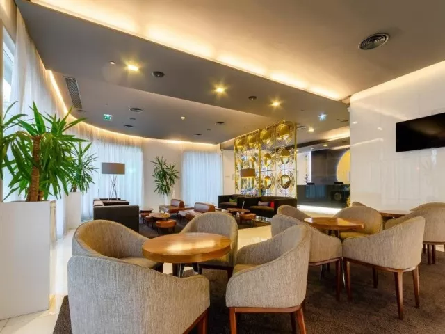Hotel má vstupní halu, recepci 24 h, snack bar, klimatizaci, výtah, Wi-Fi zdarma, směnárnu, úschovnu zavazadel.