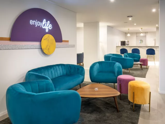 Hotel ponúka vstupnú halu s recepciou, výťah a ďalšie zariadenia vrátane dvoch reštaurácií, kaviarne a panoramatického strešného baru. Okrem toho je k dispozícii bar pri bazéne a spoločenská miestnosť. WiFi je v celom areáli hotela zdarma. K bazénu sú zdarma dostupné slnečníky, ležadlá a osušky. Hotel má aj vnútorný bazén a fitness a wellness centrum so saunou a tureckou kúpeľou (rezervácia nutná). K dispozícii sú aj masáže a kozmetické procedúry za príplatok. Parkovanie pred hotelom je tiež možné, avšak nie je možné rezervovať.