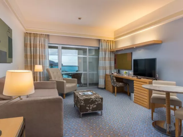 • Izba s výhľadom na mesto Rozloha izby: 30 m2 Výhľad: mesto Vybavenie: Wi-Fi, 2 samostatné lôžka alebo 1 manželská posteľ, balkón, minibar (za príplatok), trezor (za príplatok), klimatizácia, Wi-Fi, rýchlovarná kanvica, káblová TV s plochou obrazovkou, sušič vlasov, telefón na pevnú linku, písací stôl • Izba s výhľadom na bazén Rozloha izby: 30 m2 Výhľad: bazén Vybavenie: Wi-Fi, 2 samostatné lôžka alebo 1 manželská posteľ, balkón, minibar (za príplatok), trezor (za príplatok), klimatizácia, rýchlovarná kanvica, káblová TV s plochou obrazovkou, sušič vlasov, telefón na pevnú linku, písací stôl • Rodinná izba Rozloha izby: 64 m2 Výhľad: hory, krajina Vybavenie: Wi-Fi, 2 samostatné postele alebo 1 manželská posteľ, rozkladacia pohovka, balkón, minibar (za príplatok), trezor (za príplatok), klimatizácia, rýchlovarná kanvica, káblová TV s plochou obrazovkou, sušič vlasov, telefón na pevnú linku, písací stôl • Izba s výhľadom na oceán Rozloha izby: 30 m2 Výhľad: oceán Vybavenie: Wi-Fi, 2 oddelené lôžka, balkón, minibar (za príplatok), trezor (za príplatok), klimatizácia, rýchlovarná kanvica, káblová TV s plochou obrazovkou, sušič vlasov, telefón na pevnú linku, písací stôl • Izba Superior s výhľadom na oceán Rozloha izby: 30 m2 Výhľad: oceán Vybavenie: Wi-Fi, 2 oddelené postele, rozkladacia pohovka, balkón, minibar (za príplatok), trezor (za príplatok), klimatizácia, rýchlovarná kanvica, káblová TV s plochou obrazovkou, sušič vlasov, telefón na pevnú linku, písací stôl • Suita Junior Rozloha apartmánu: 62 m2 Výhľad: záhrada/bazén alebo oceán Vybavenie: Wi-Fi, 2 samostatné postele alebo 1 manželská posteľ, rozkladacia pohovka, balkón, minibar (za príplatok), trezor (za príplatok), klimatizácia, rýchlovarná kanvica, káblová TV s plochou obrazovkou, sušič vlasov, telefón na pevnú linku, písací stôl • Suita Superior Junior s výhľadom na oceán Rozloha apartmánu: 62 m2 Výhľad: oceán Vybavenie: Wi-Fi, 2 samostatné postele alebo 1 manželská posteľ, rozkladacia pohovka, balkón, minibar (za príplatok), trezor (za príplatok), klimatizácia, rýchlovarná kanvica, káblová TV s plochou obrazovkou, sušič vlasov, telefón na pevnú linku, písací stôl • Suita s výhľadom na oceán a záliv Rozloha apartmánu: 70 m2 Výhľad: oceán/záliv Vybavenie: spálňa: Wi-Fi, 2 samostatné lôžka alebo 1 manželská posteľ, obývacia izba: rozkladacia pohovka, balkón, minibar (za príplatok), trezor (za príplatok), klimatizácia, rýchlovarná kanvica, káblová TV s plochou obrazovkou, sušič vlasov, telefón na pevnú linku, písací stôl, sedací roh • Prezidentská suita Rozloha apartmánu: 110 m2 Výhľad: oceán Vybavenie: spálňa: Wi-Fi, 2 samostatné lôžka alebo 1 manželská posteľ, obývacia izba: rozkladacia pohovka, balkón, minibar (za príplatok), trezor (za príplatok), klimatizácia, rýchlovarná kanvica, káblová TV s plochou obrazovkou, sušič vlasov, telefón na pevnú linku, písací stôl, sedací roh
