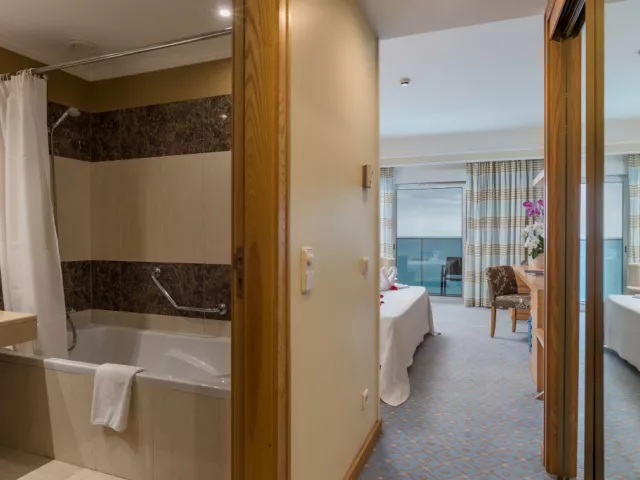 Niekoľko hotelových izieb Pestana Carlton je klimatizovaných, priestranných a elegantne zariadených. Každá z 290 izieb má balkón, k dispozícii sú župany, papuče a plážové osušky. Vo wellness oddelení si hostia môžu užiť vnútorný bazén, relaxačné miestnosti a procedúry Magic Spa.
