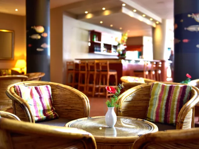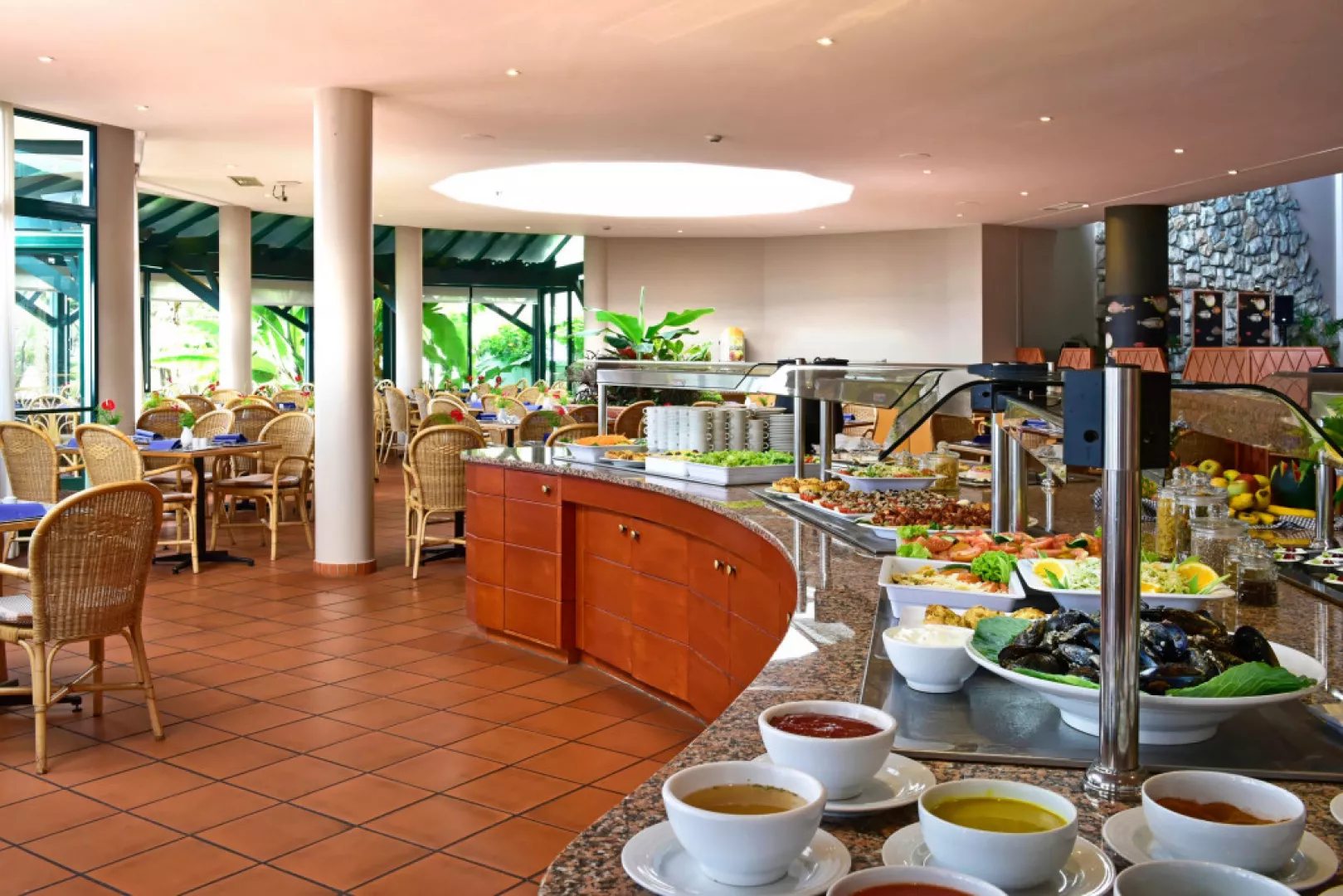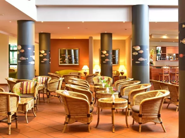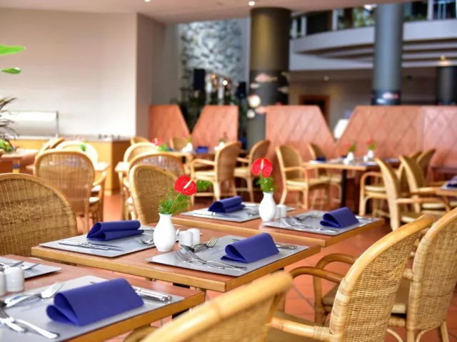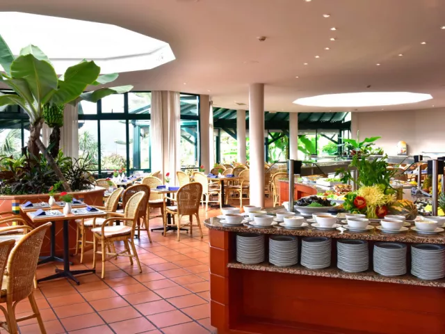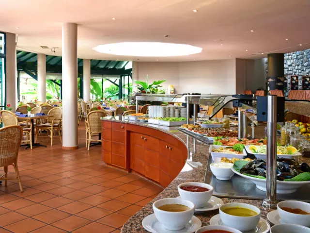 • Arlequim: Reštaurácia s miestnymi a medzinárodnými jedlami, formou švédskych stolova a à la carte. Z reštaurácie sa poskytuje krásny výhľad. • Bar pri bazéne: Nájdete tu ľahké jedlá a svieže nápoje hneď pri bazéne.