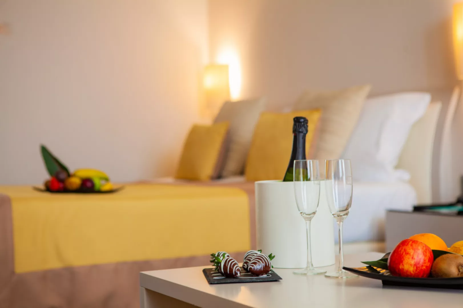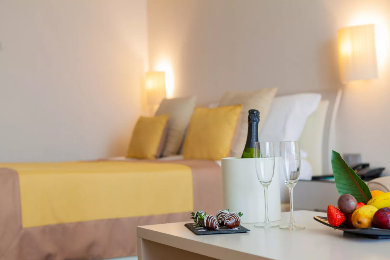 Izby s manželskou posteľou a výhľadom na oceán sú vybavené vlastným príslušenstvom (kúpeľňa, WC, fén), klimatizáciou, SAT/TV, telefónom, trezorom a balkónom, ako aj WiFi pripojením. Na požiadanie a za príplatok sú k dispozícii priestrannejšie izby typu Superior vo vyšších poschodiach s rovnakým výhľadom.