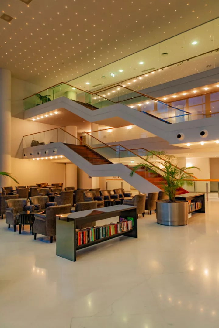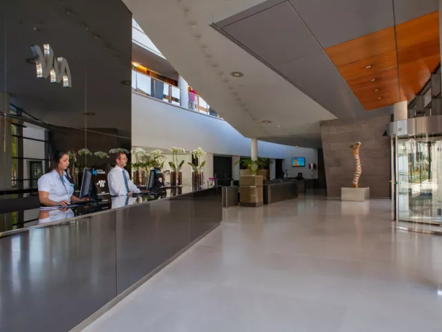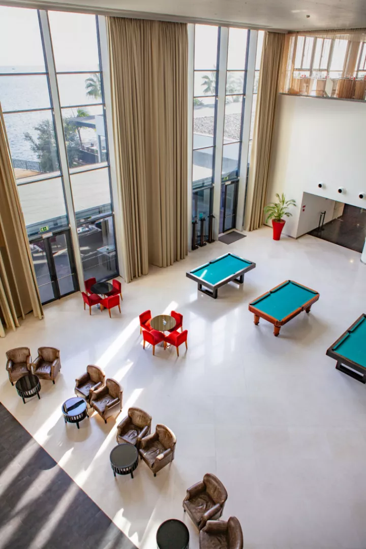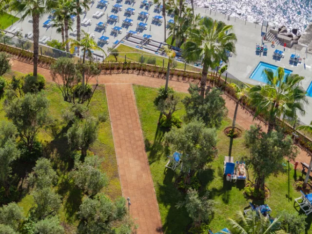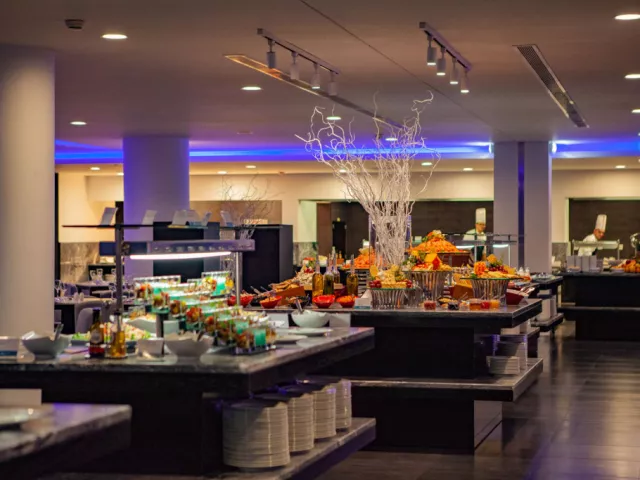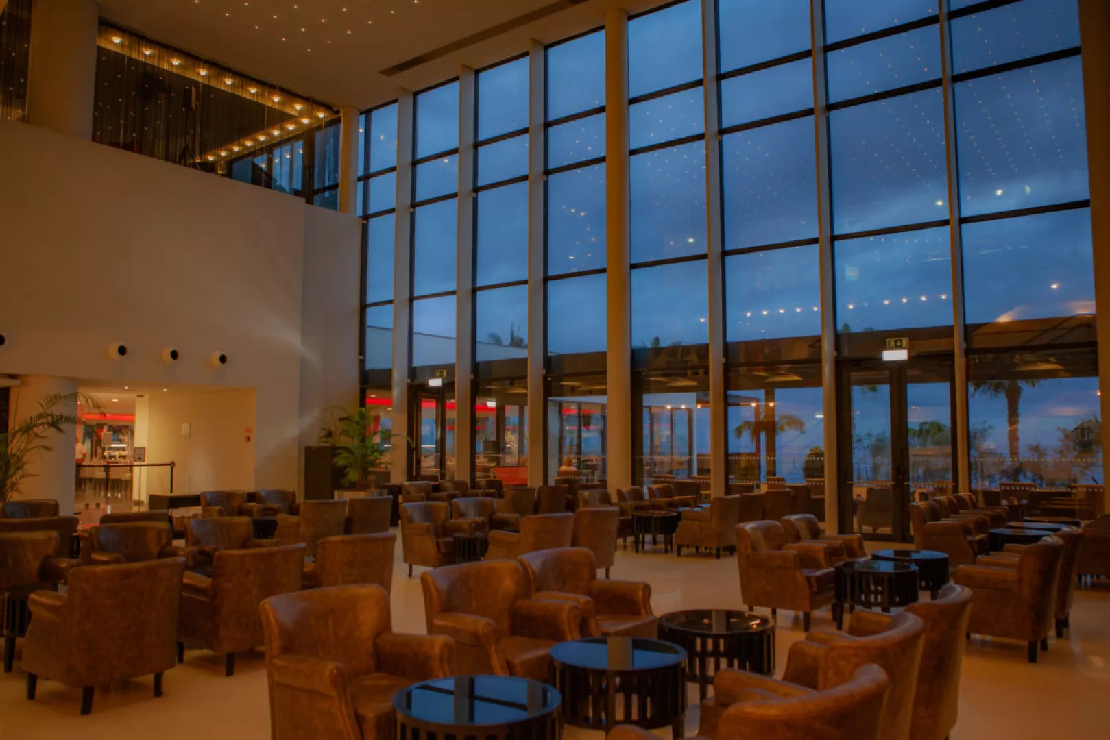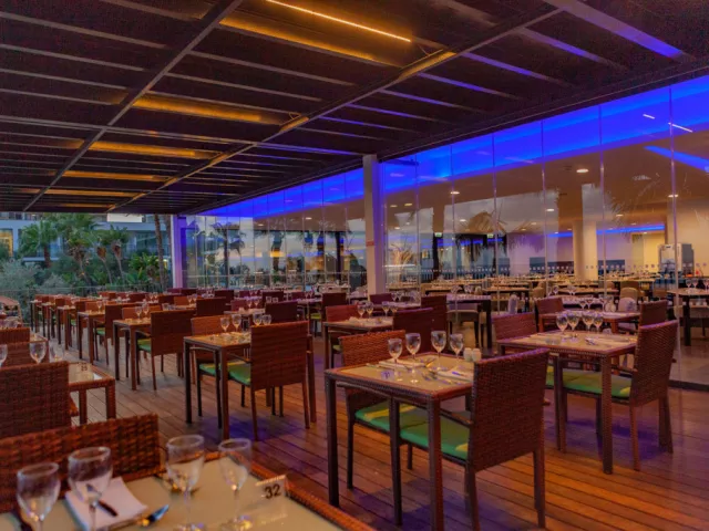Hotel ponúka vstupnú halu s recepciou, výťahy, hlavnú reštauráciu a tri à la carte reštaurácie. K dispozícii je aj WiFi zdarma v celom areáli, business centrum, konferenčná miestnosť a parkovisko (s obmedzenou kapacitou). Súčasťou vybavenia sú dva bazény s morskou vodou, dva detské bazény a krytý bazén; ležadlá, slnečníky a osušky pri bazénoch sú zdarma.