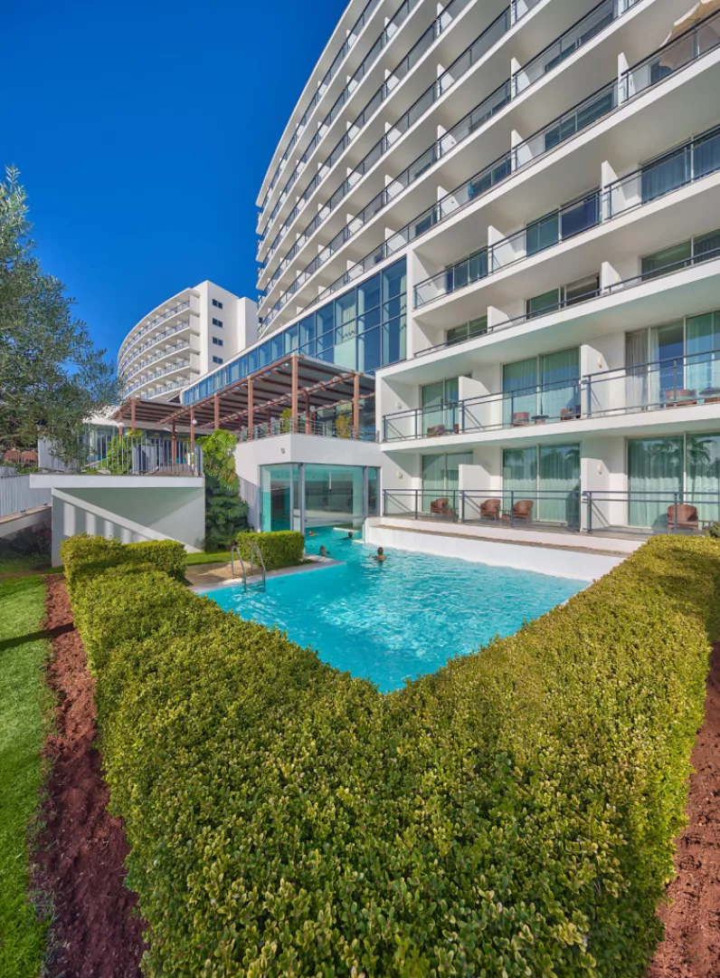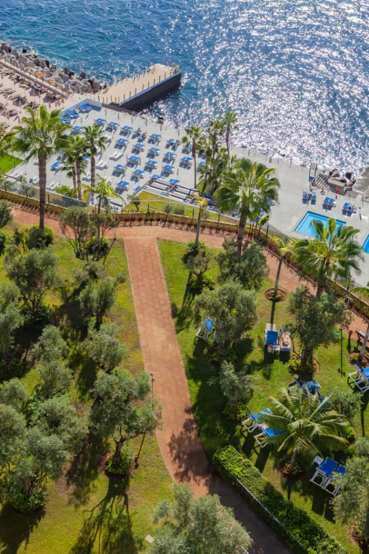 Moderný komplex pozostáva z dvoch desaťposchodových budov, nachádzajúcich sa na skalnatom výbežku priamo nad morom, približne 2 km od historického centra Funchalu a asi 24 km od letiska.