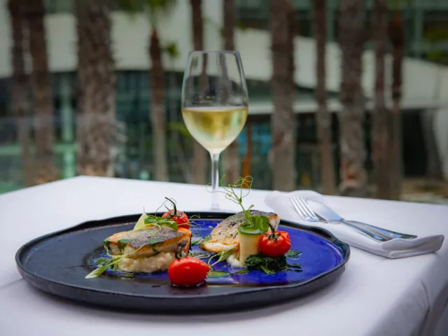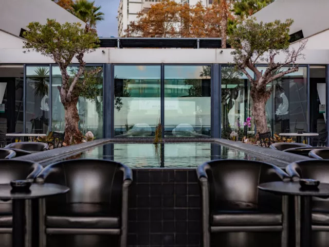 Z terasy pod hotelom, kam je prístup dvoma výťahmi, je priamy vstup do mora po schodoch alebo po rebríku z troch betónových mol.