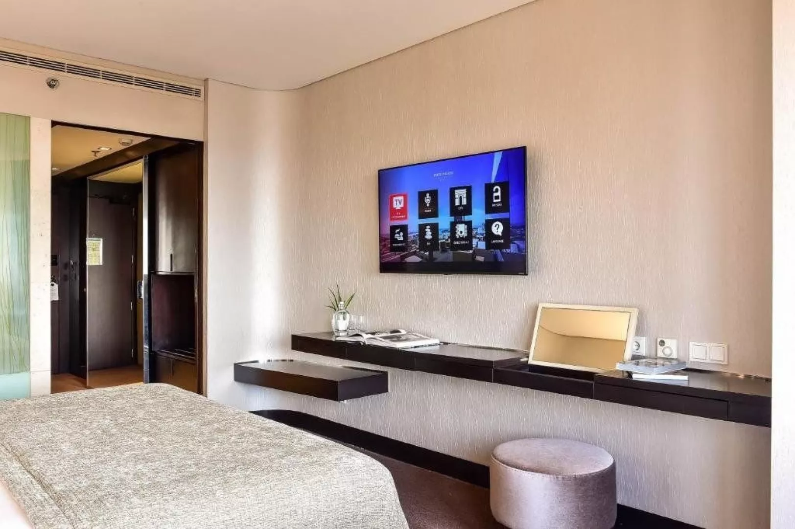 Izby sú vybavené manželskou posteľou alebo dvoma oddelenými lôžkami. Každá izba je klimatizovaná a má vlastné sociálne zariadenie (WC, sprcha alebo vaňa, bidet, fén, toaletné potreby), TV, telefón, trezor, set na prípravu kávy/čaju a minibar. Suity ponúkajú priestornejšie zázemie a nachádzajú sa na vyšších poschodiach hotela.