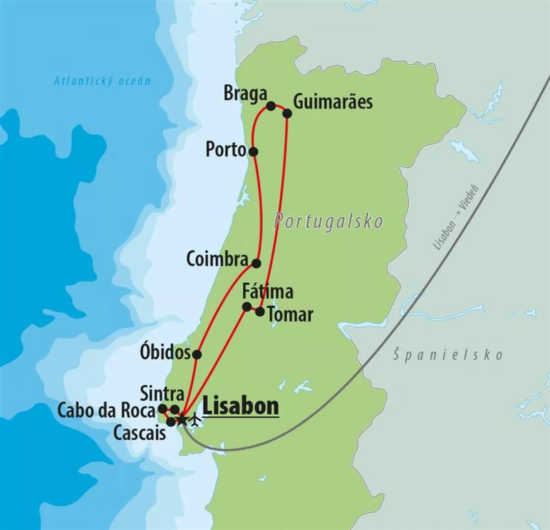 8. deň – raňajky, transfer na letisko a odlet z Lisabonu do Viedne.
